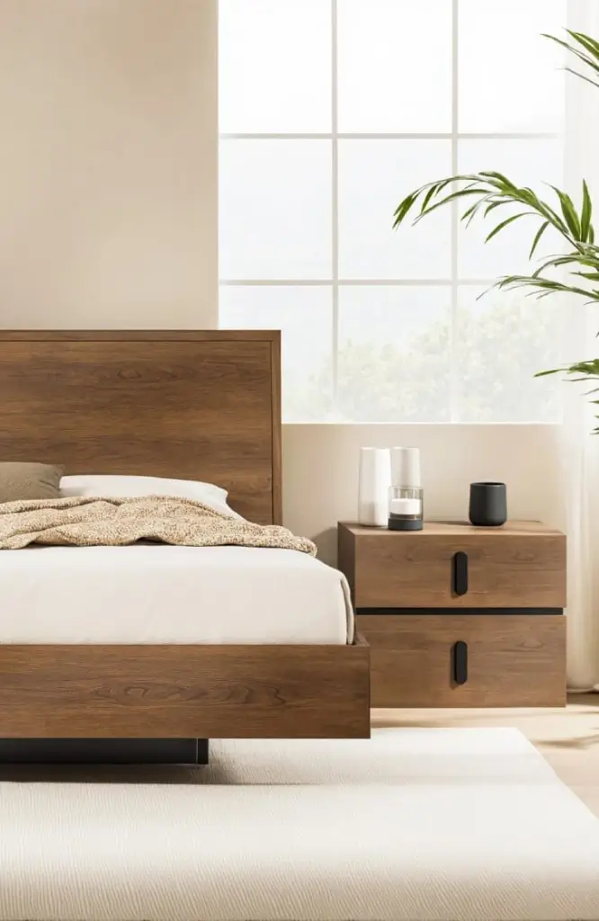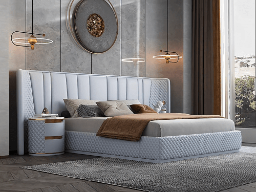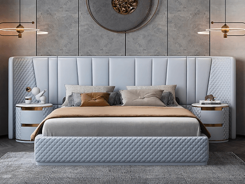 Burchard Deluxe Leather Bed Frame-Queen/King
