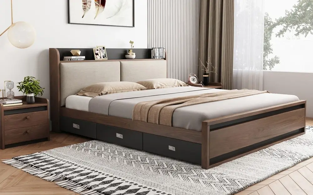 Janice Wooden Multi Functional Gas Lift Bed With Storage-Double/Queen/King