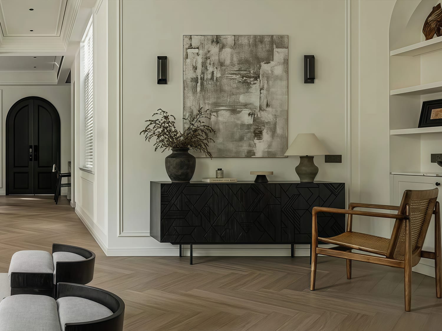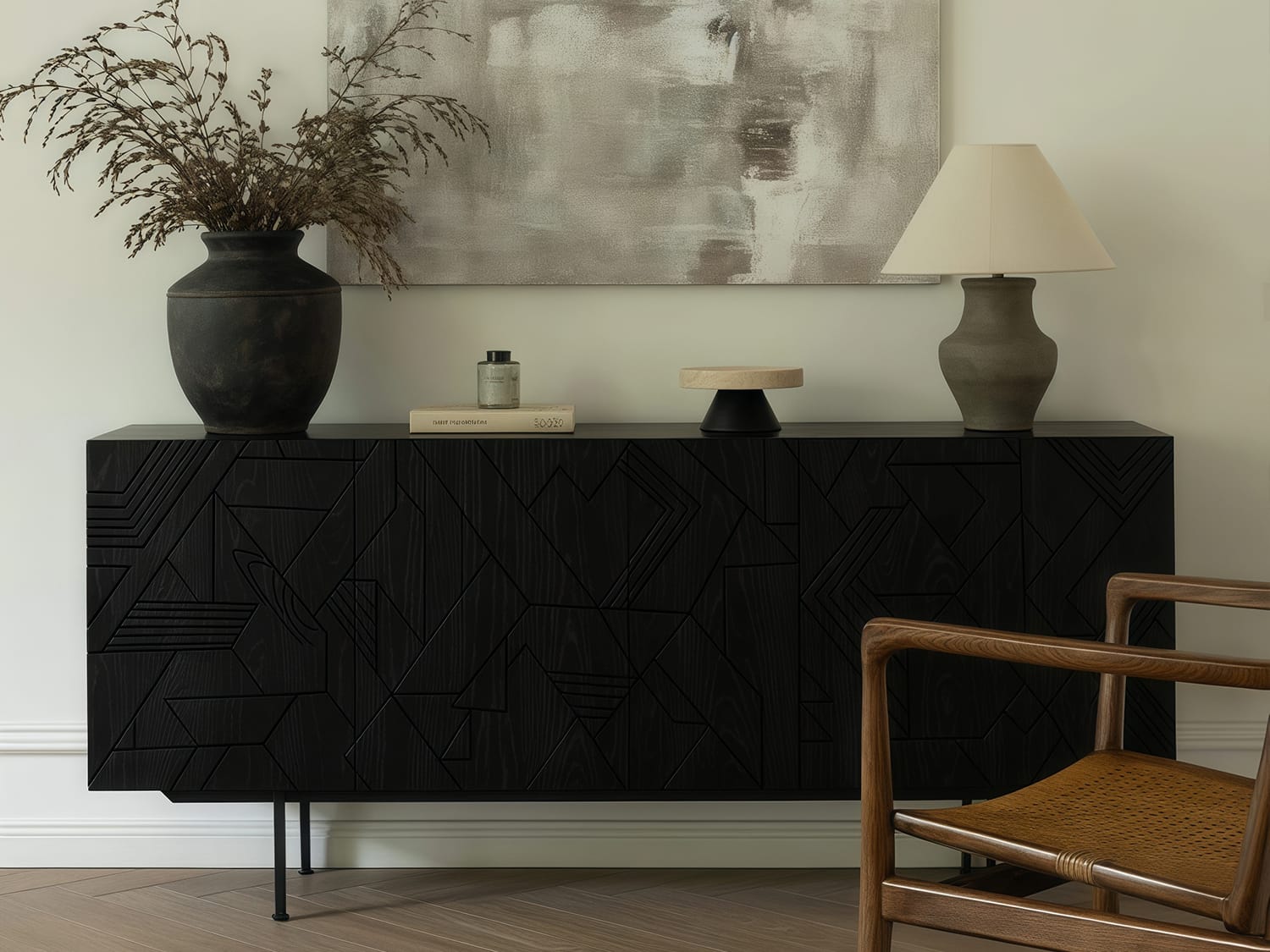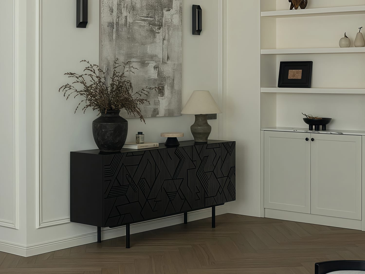 Acacias Modern Storage Cabinet/Buffet reimagines functional furniture with its artful balance of clean geometry and warm textures. The ribbed woodgrain doors create visual interest while concealing generous storage space, perfect for displaying serveware or tucking away living room essentials. Its sturdy metal base and smooth matte finish lend contemporary contrast, making this piece equally at home in dining areas or lounge spaces. Designed for modern living, it offers discreet organization without compromising on style—where every detail elevates your daily rituals.
