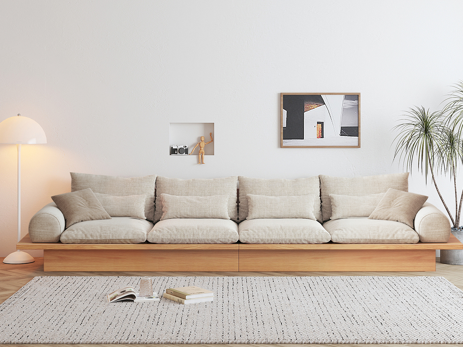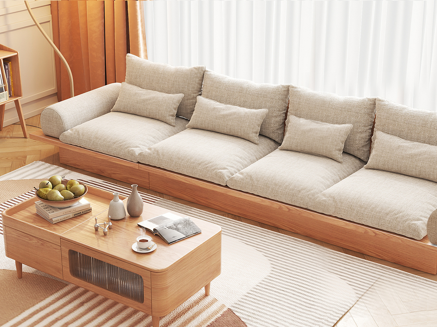 Anasia wooden storage sectional sofa-3.5M-With/Without Armrest