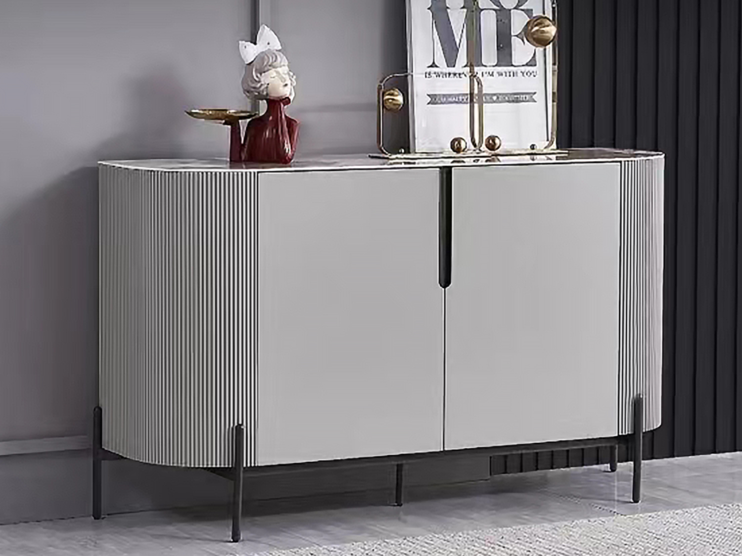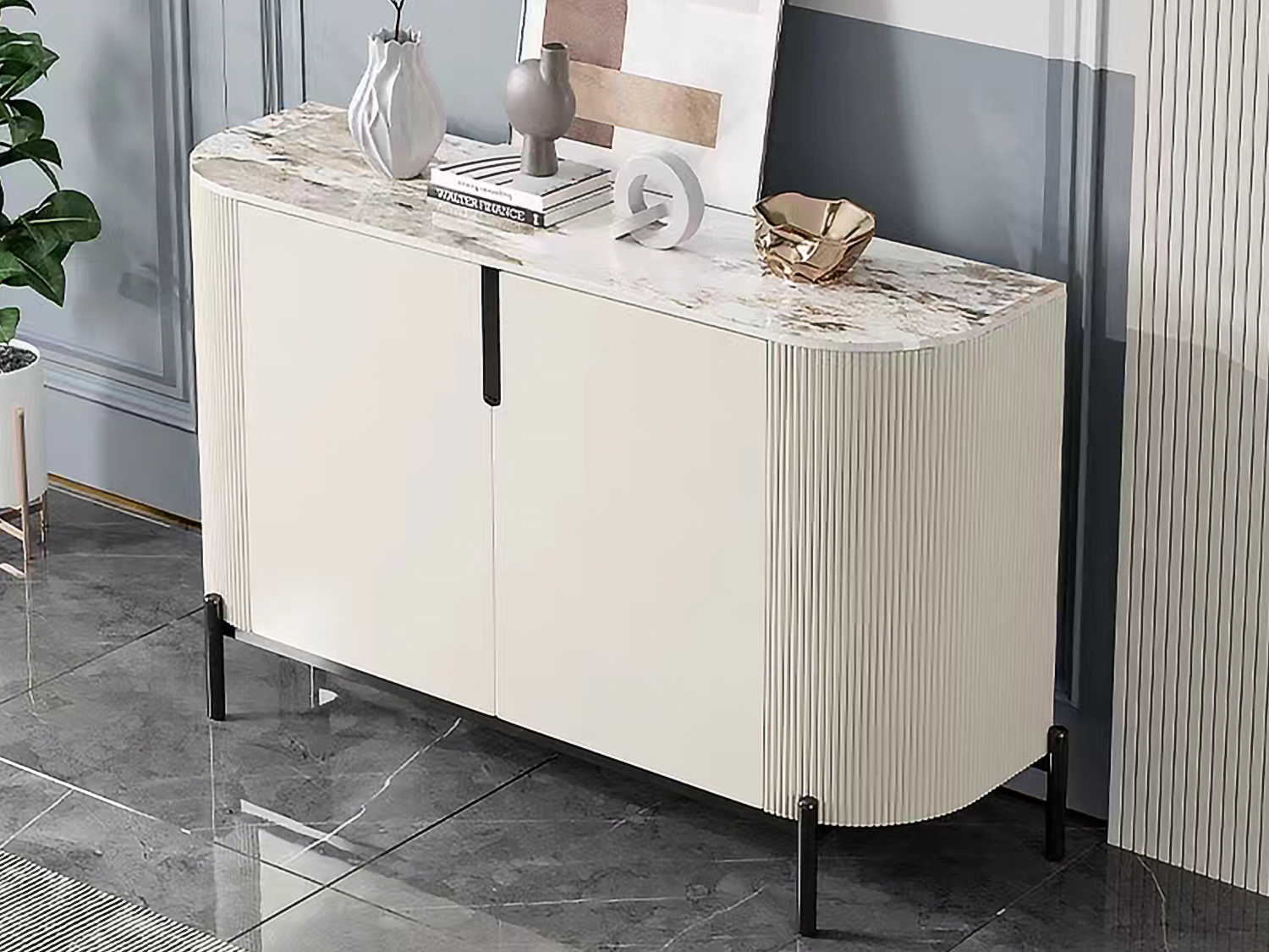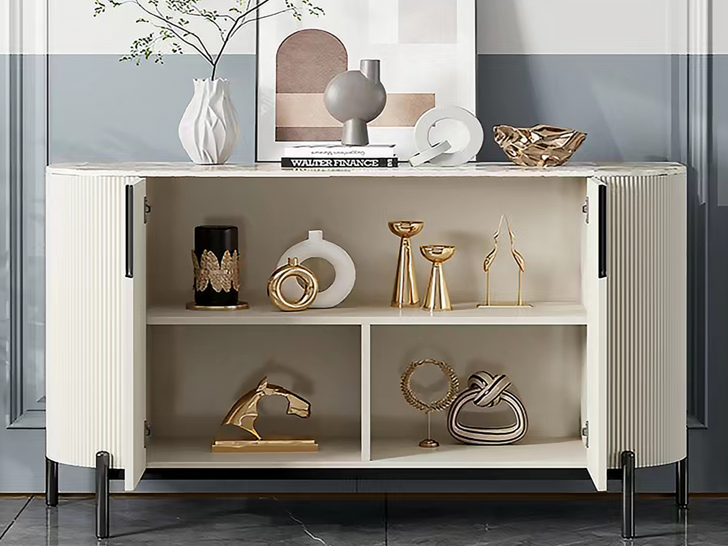 This cabinet is ideal for storing and organizing your home essentials. The storage compartments can be used to keep cutlery, plates and bowls or any other valuable items in an organized manner while the snap-back door helps keep the contents safe from being unorganized or damaged. The Sintered stone top also provides an elegant yet touchable look which makes it a perfect addition to your living room as well.