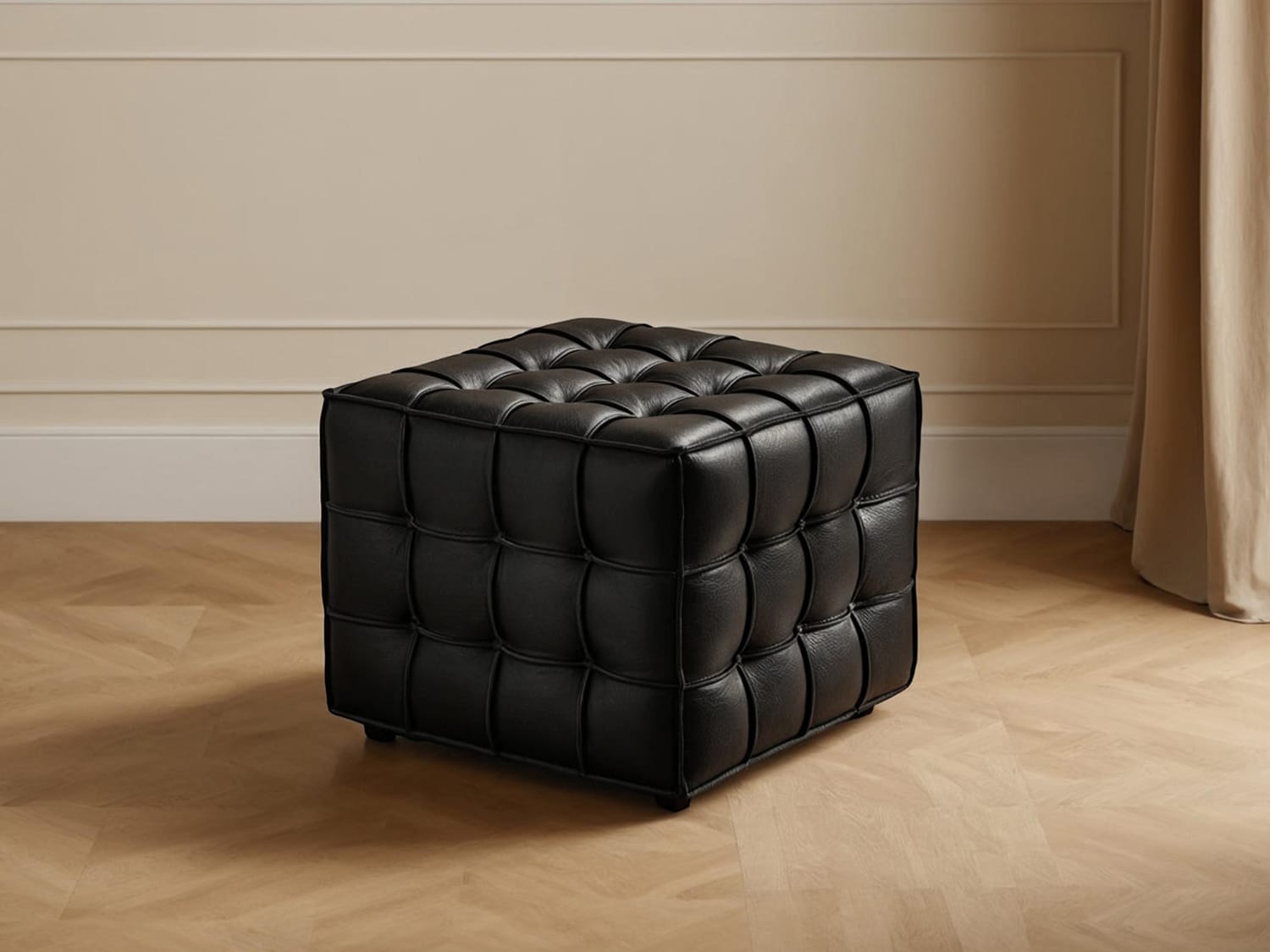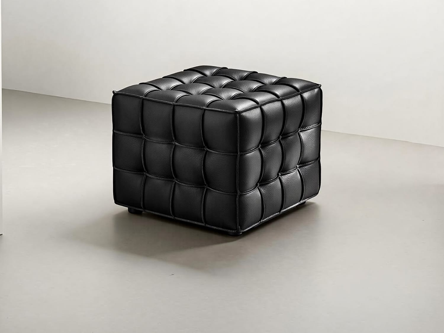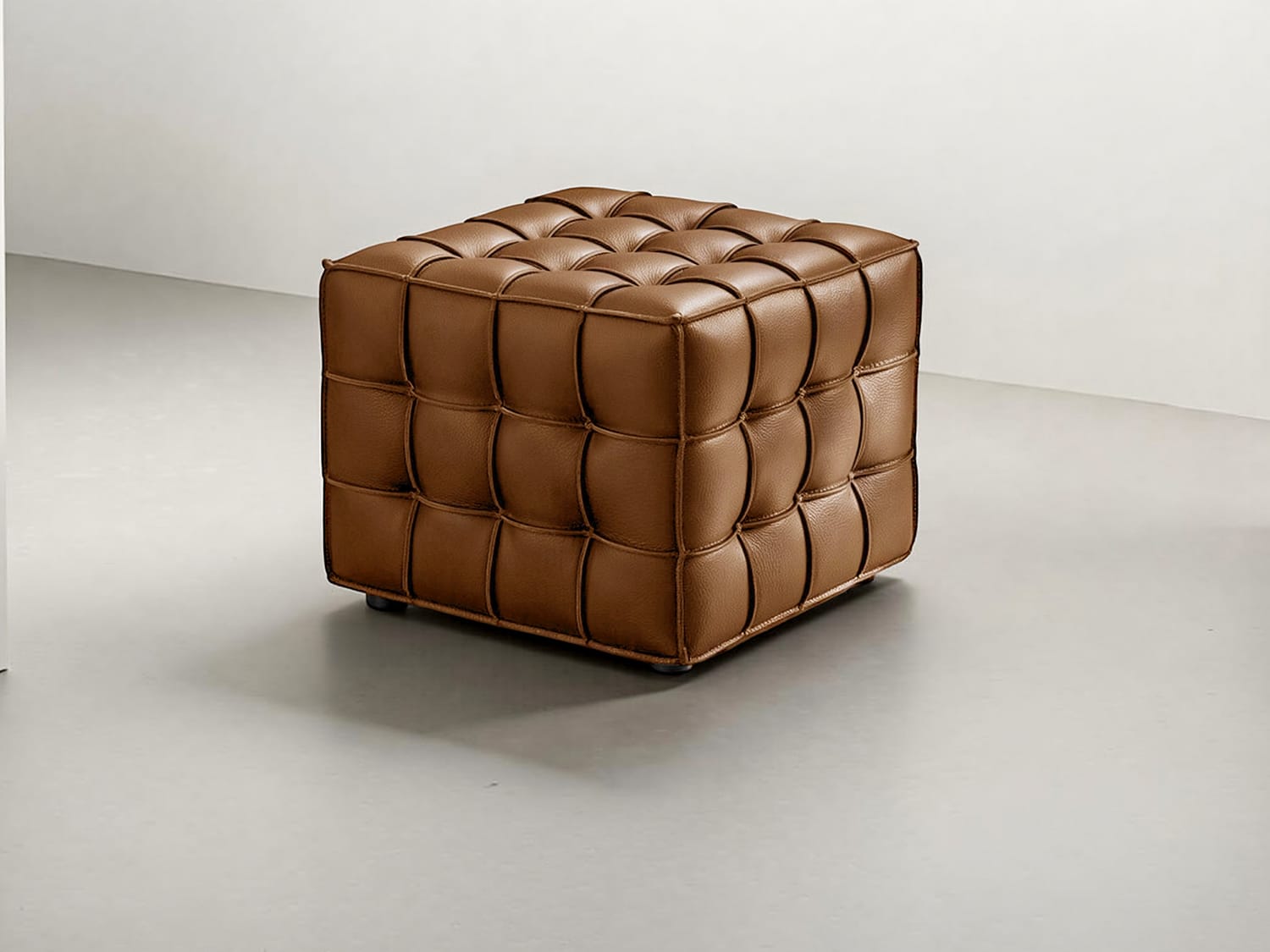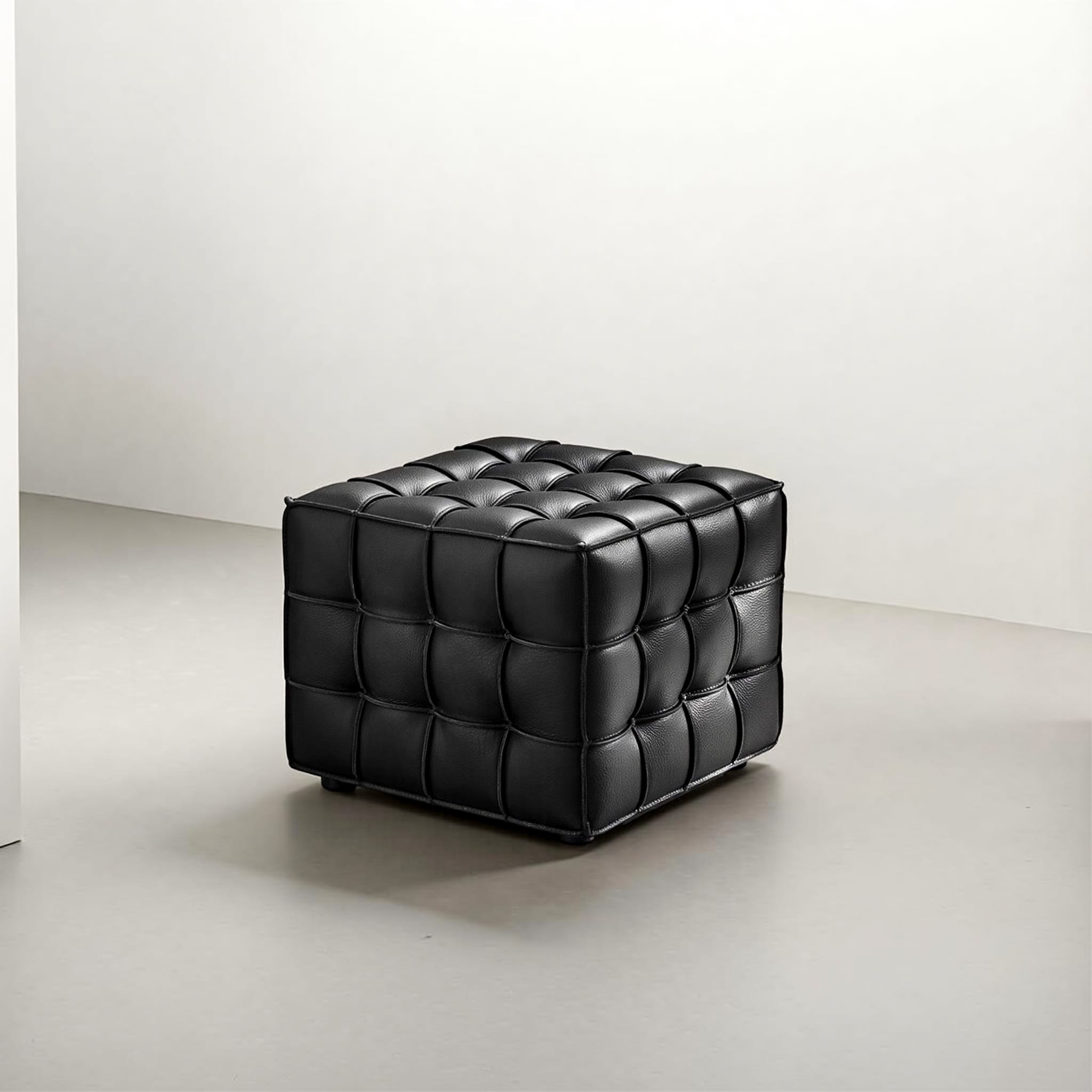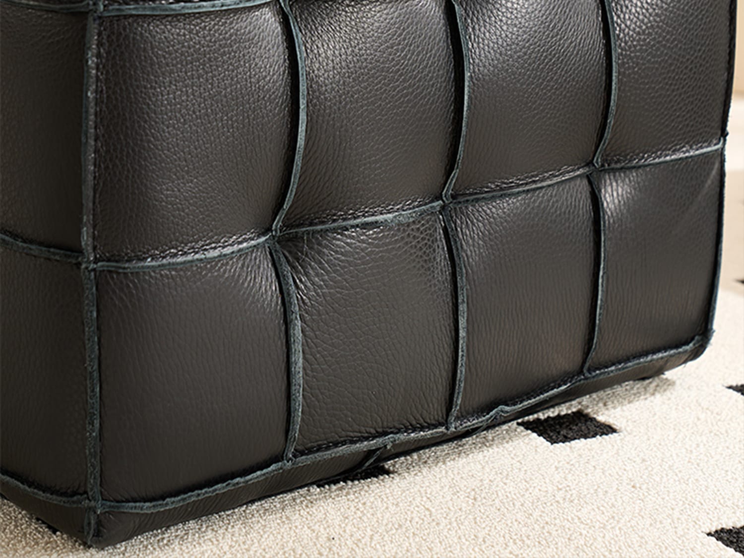 Auro Real Leather Ottoman-Black/Tan