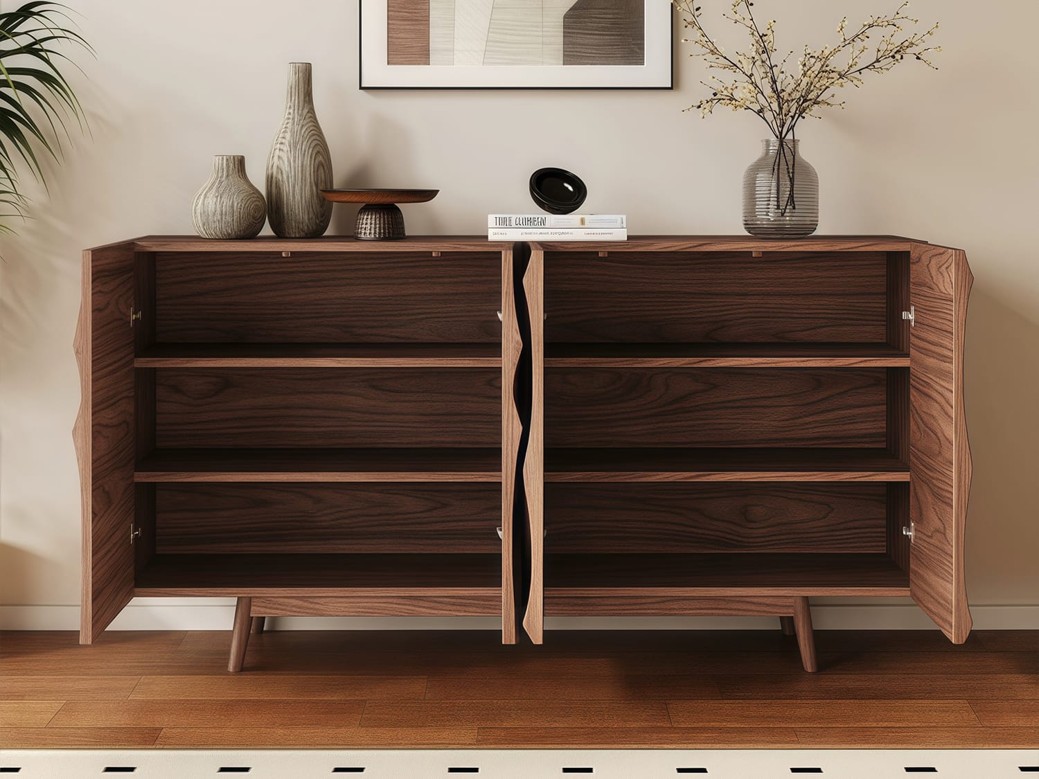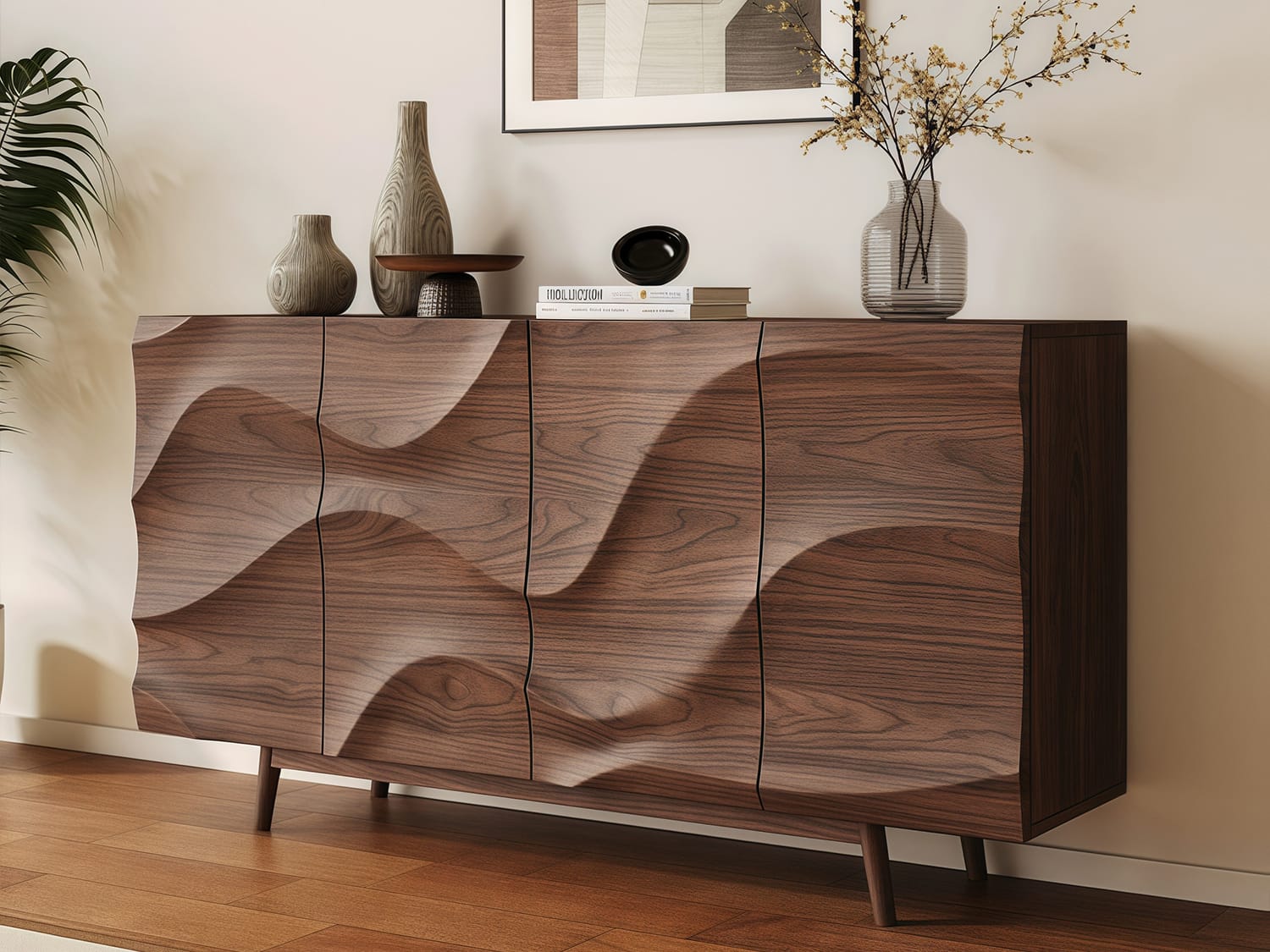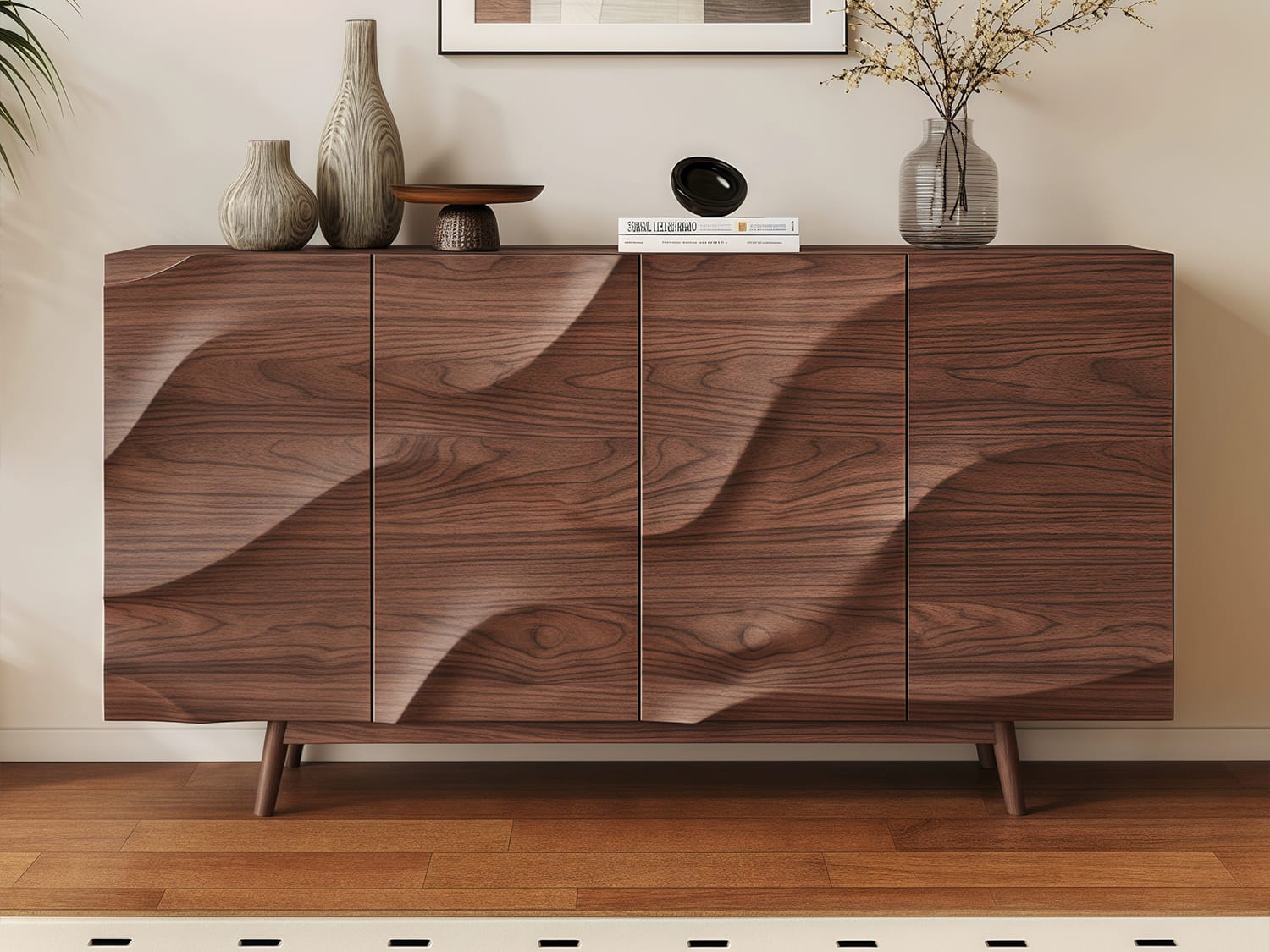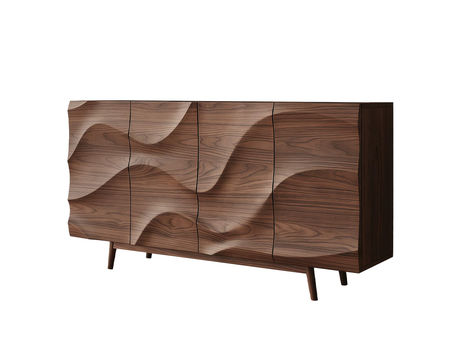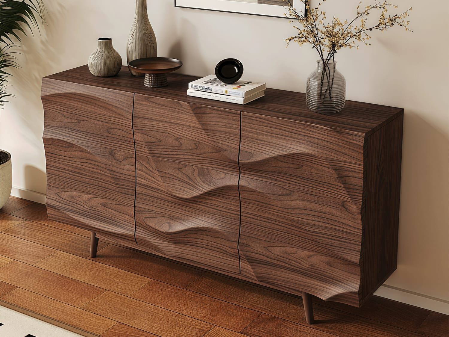 Enhance your living space with the Bacum Modern Storage Cabinet, featuring an elegant wave pattern design that adds a touch of contemporary artistry to any room.