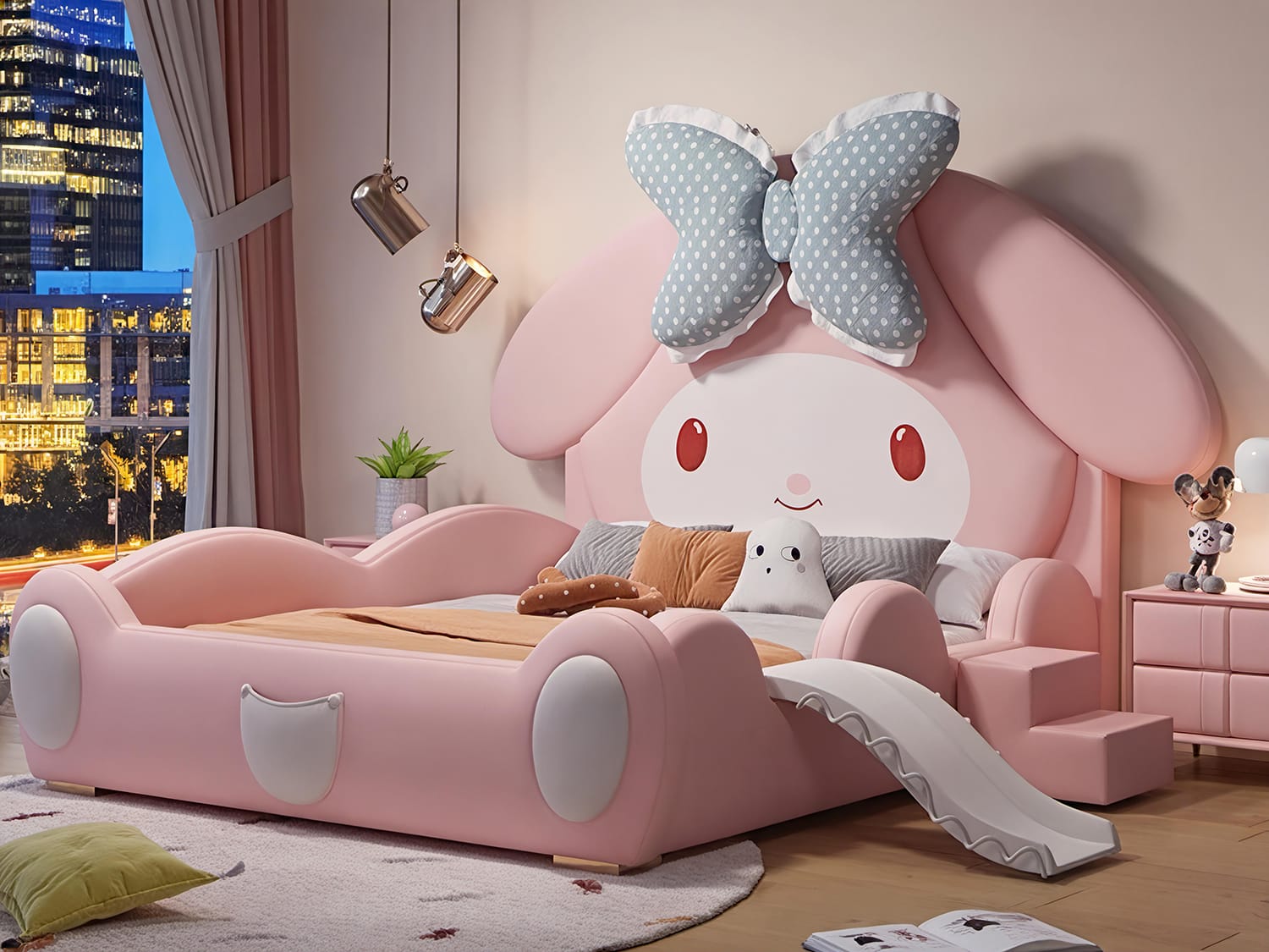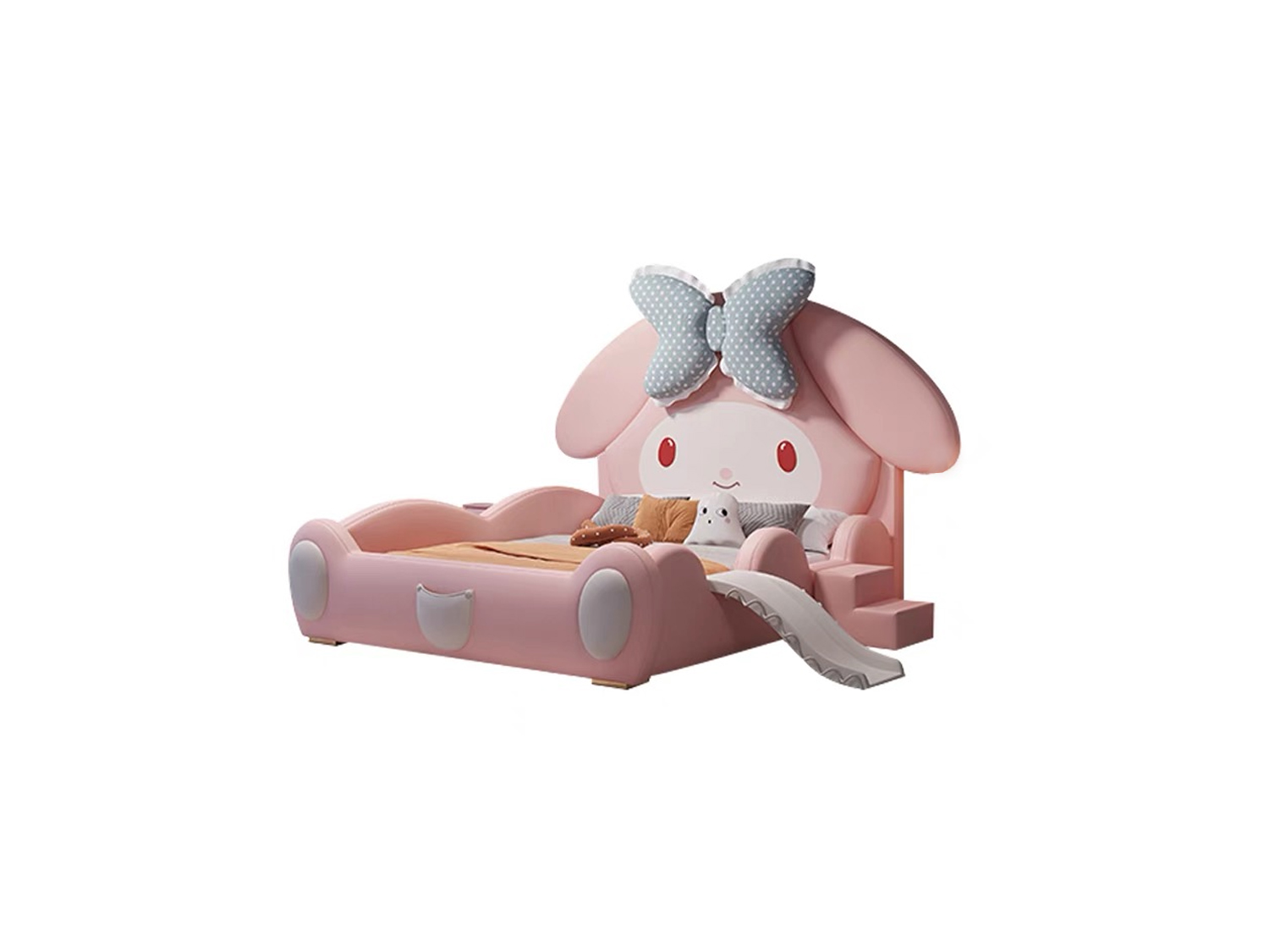 The Baerami Pink Kid’s Bed Frame-With/Without Removable Slide & Stairs is a playful, safe, and comfy bed frame that adds a touch of fun and comfort to your child’s bedroom. It features a round safety corner, stable construction, creative cartoon design, safety bedside rail, microfiber leather upholstery, high-density foam, and a metal, solid wood, and plywood frame. Create a joyful and cozy sleeping space for your child with the Baerami Pink Kid’s Bed Frame with/without Removable Slide&Stairs.