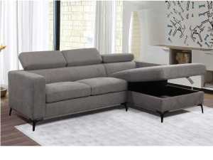 Bellini corner sofa/sofa bed has some amazing features! It easily seats 4 on the couch; plus the ottoman and storage chaise can seat more, or just put your feet up. Also, when you pull out the under part of the couch, its base raises up to the seat height of the couch, and you have a sofa bed! What a great idea, a comfortable sofa in Rhino Suede fabric. Now, did I miss anything? Oh yes, the ottoman lid lifts up to provide storage.