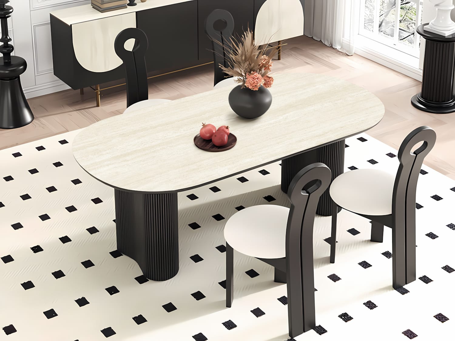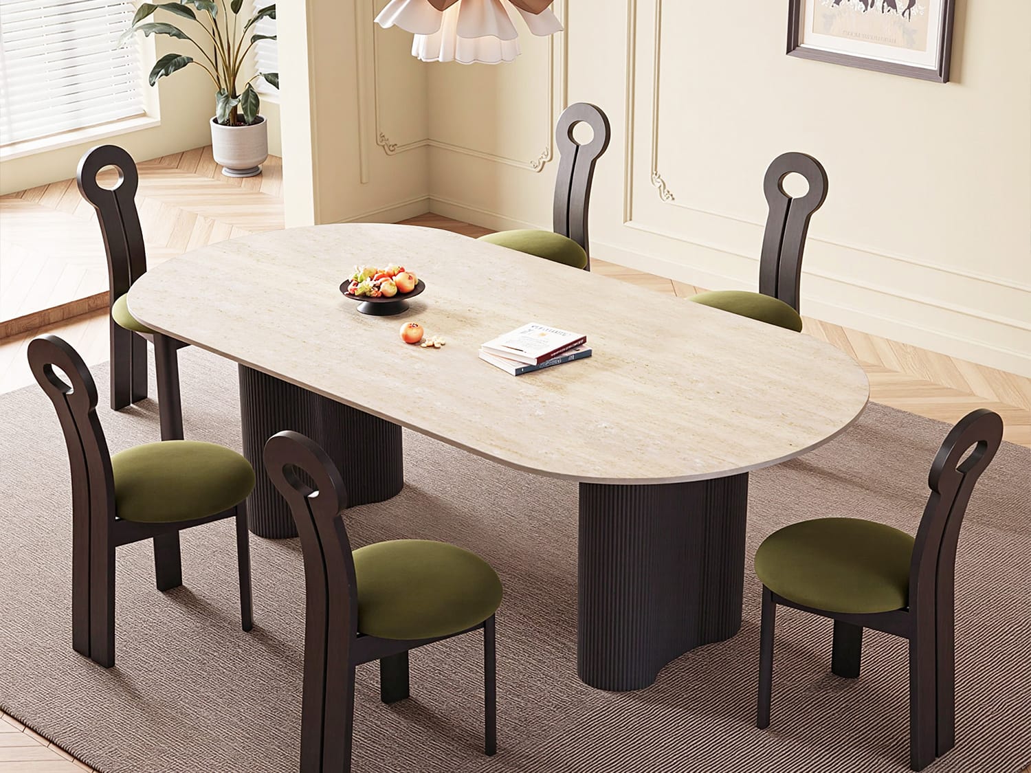 The Bencubbin Travertine Sintered Stone Dining Table brings a refined touch to any dining space. With clean lines and versatile sizes from 140–220cm, it fits both family meals and larger gatherings. The tabletop can be customized in pattern and shape to suit your style.