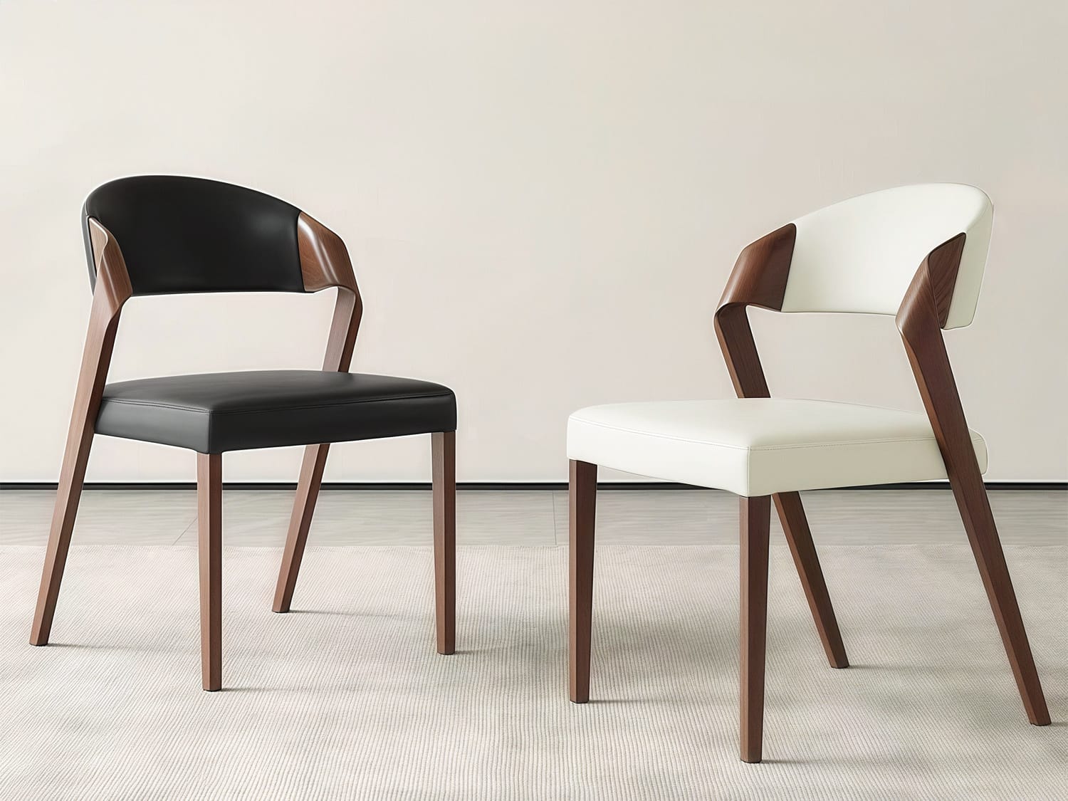 Berrin Modern Wooden Leather Dining Chair-Black/White/Brown