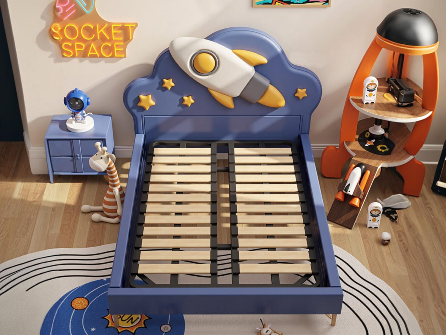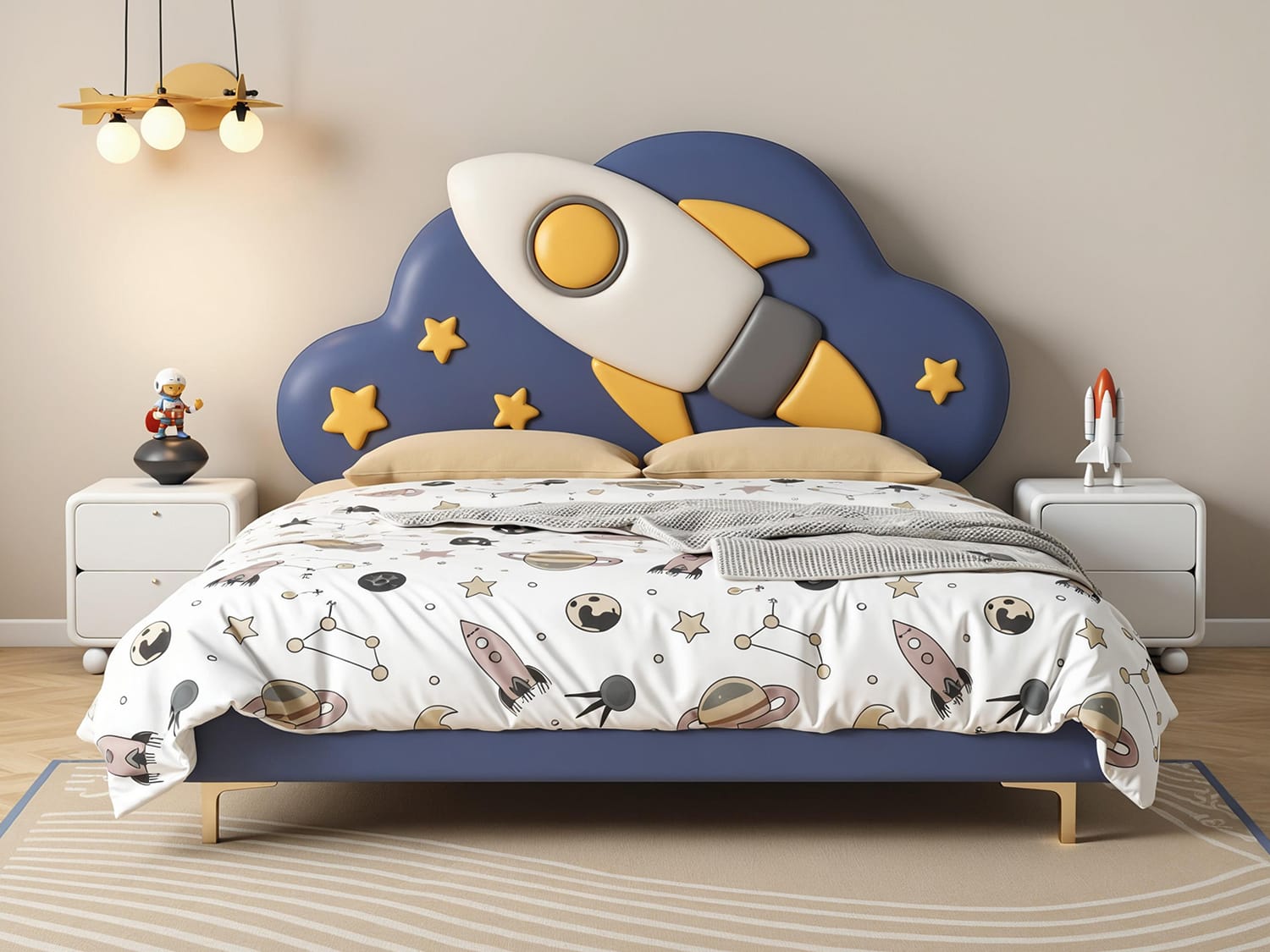 Built with high-density foam for cushioning and a durable metal + solid wood + plywood frame, it ensures long-lasting strength. Available in King Single, Double, and Queen sizes, this bed blends style, safety, and comfort for your child’s dream bedroom.