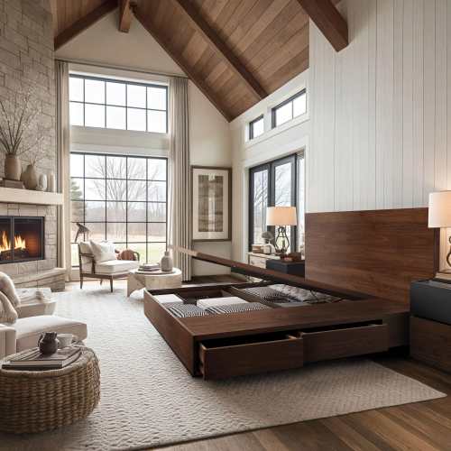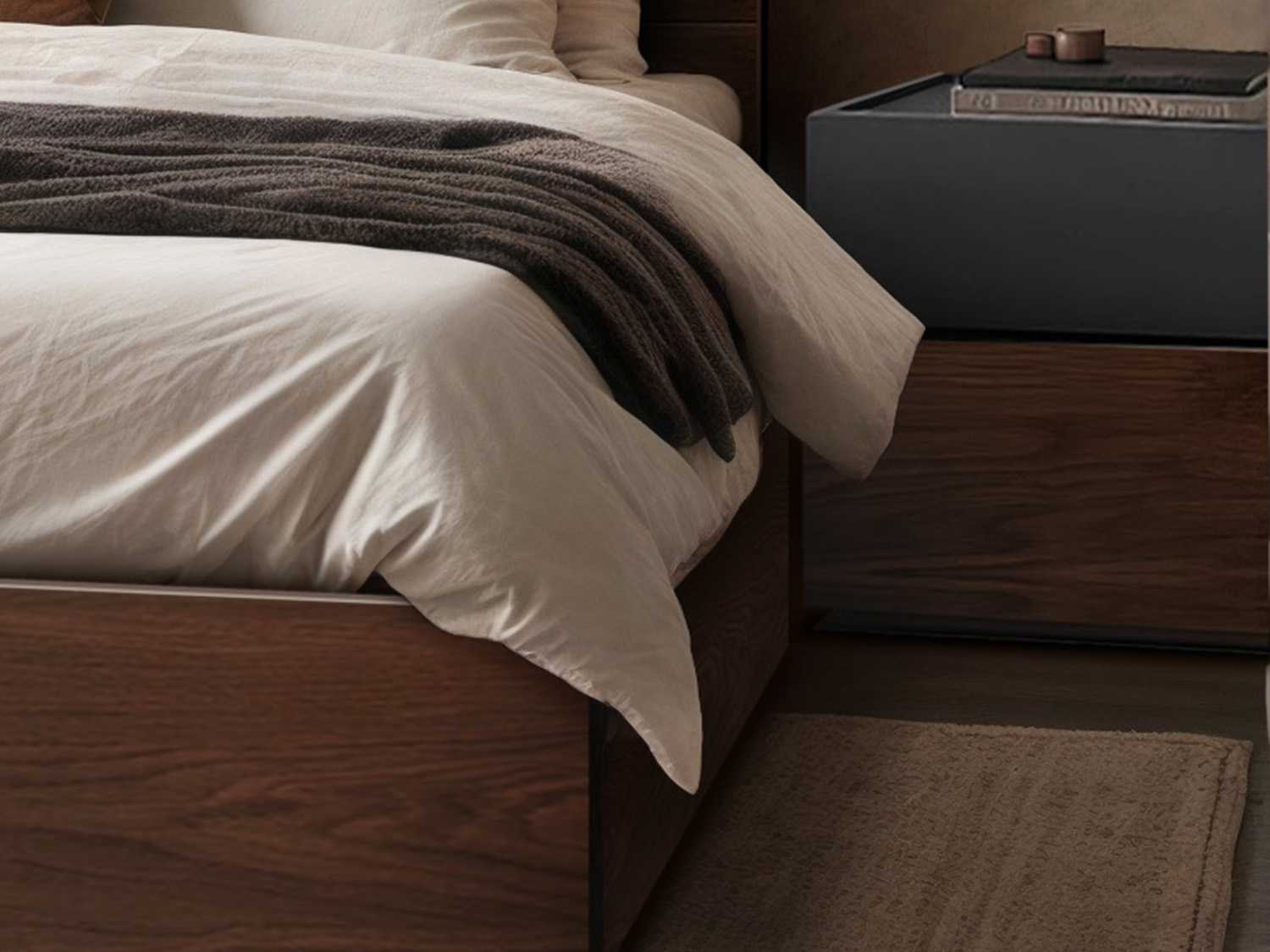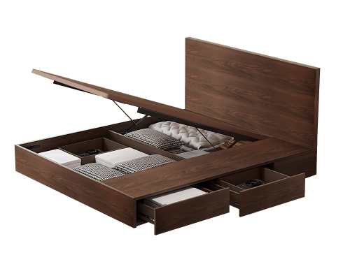 Enhance your bedroom with the Brawley Wooden Bed, combining modern elegance and smart functionality. Featuring a refined aesthetic with Italian minimalist style, this bed is designed for both beauty and practicality. The gas lift storage function provides hidden space for bedding or seasonal items, while two smooth-gliding drawers offer additional organization.