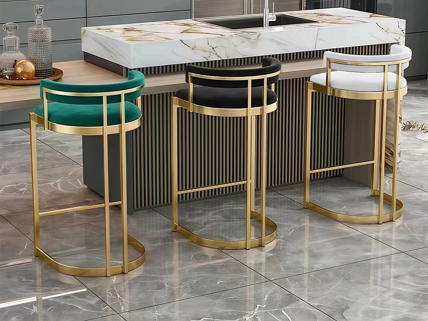 The Bridger Modern Velvet Bar Stool offers ergonomic comfort with a touch of modern elegance. Featuring soft safety corners, it provides a secure and stylish seating option for any space. Crafted from luxurious velvet fabric, the stool showcases a minimalist style that complements any decor. The high-density foam cushion ensures exceptional comfort, while the stainless steel frame adds durability and stability. Perfect for bars, kitchens, or dining areas, this stool combines functionality with fashion, making it an ideal addition to your home.