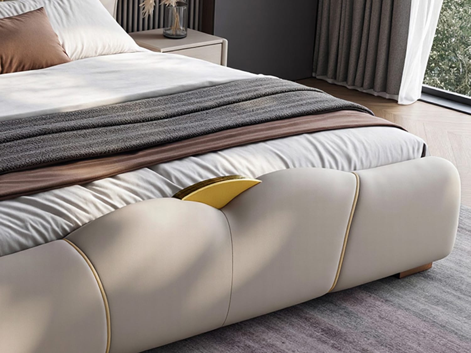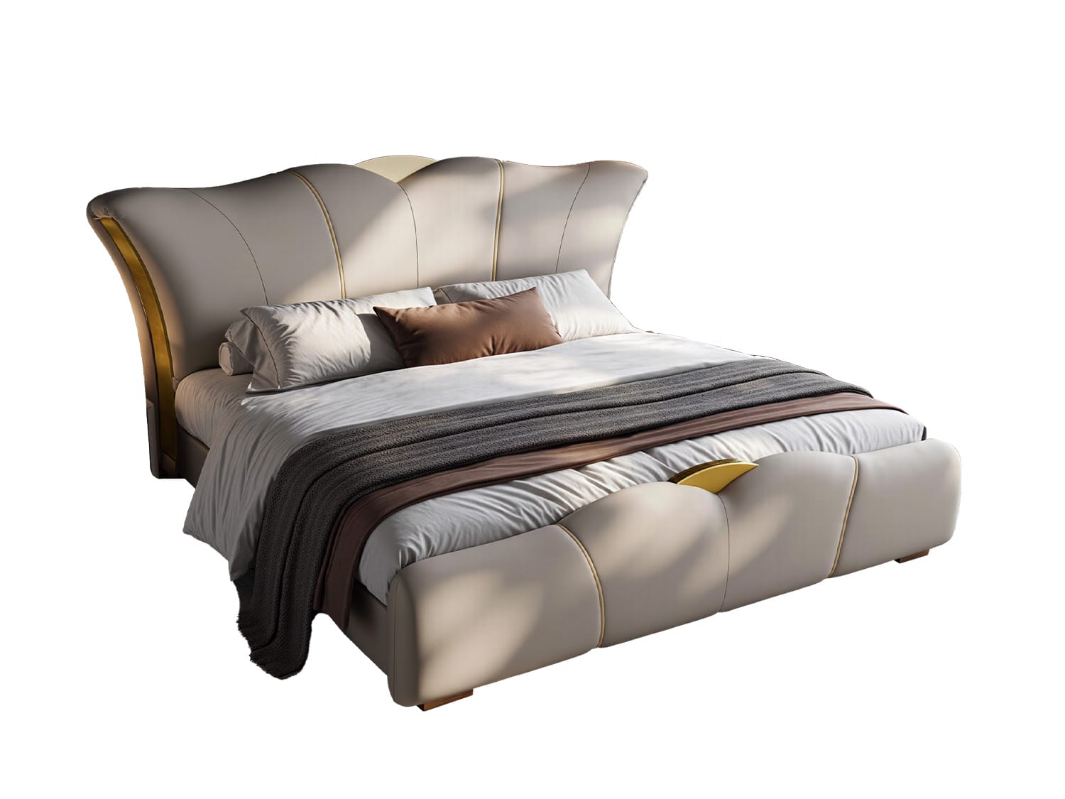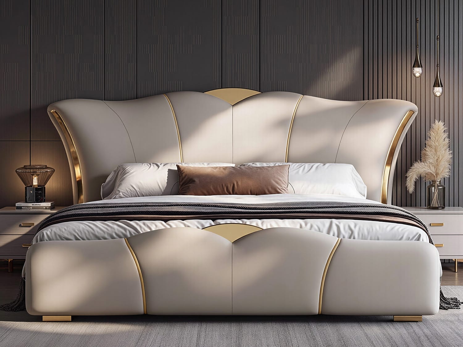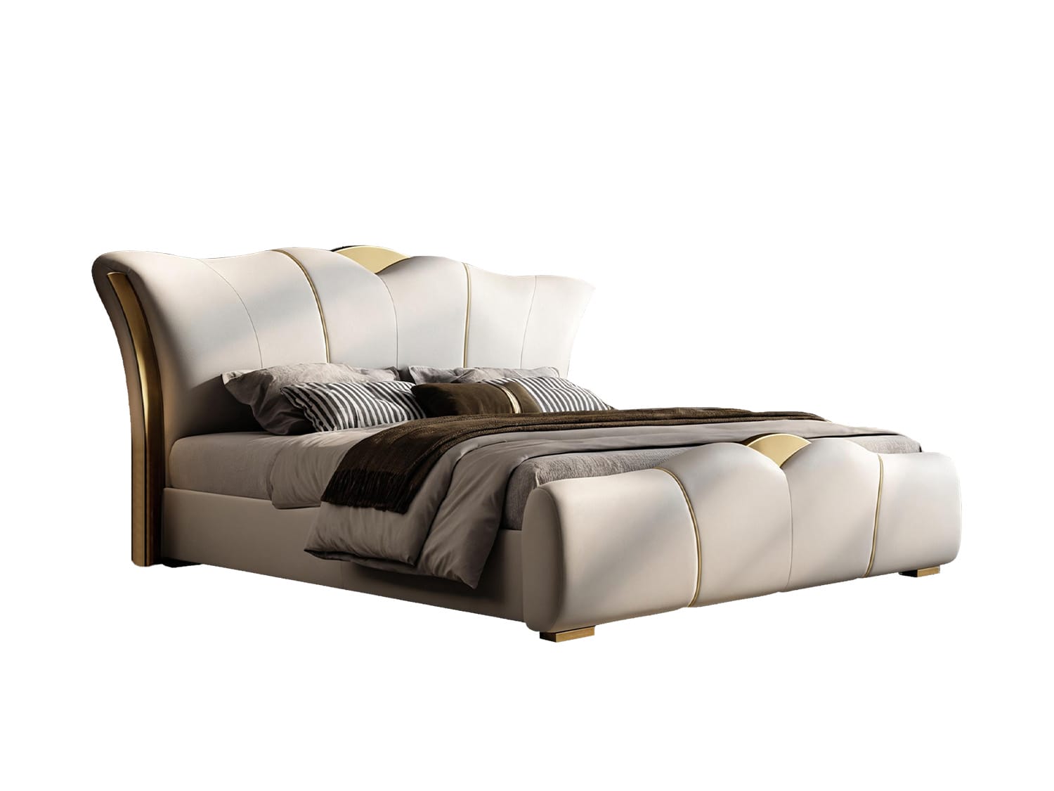 The Carlin Luxury Leather Bed Frame is a stylish and modern piece of furniture that is designed to provide enhanced backrest support. The bed frame comes in queen and king sizes and has an embedded mattress that ensures comfort during sleep. The high headboard is great for back support and the surface of the bed is made of microfiber leather, which adds to its charm. The bed frame is made using high-density sponge, which ensures that it stays comfortable for long periods of use. The use of stainless steel and pine makes the frame durable and sturdy. Overall, the Carlin Luxury Leather Bed Frame is a great addition to any modern and stylish bedroom.