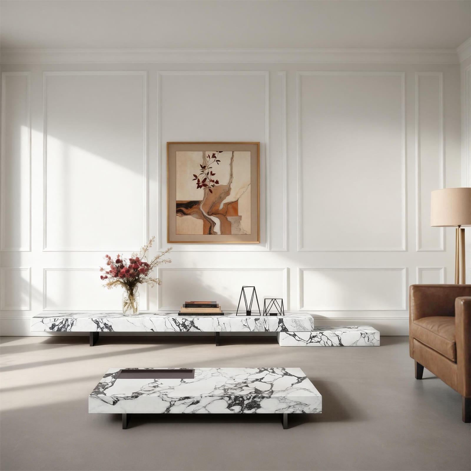 Casterton Sintered Stone TV Unit-Black Crystal/Venice/Bulgari White/Bulgari Black