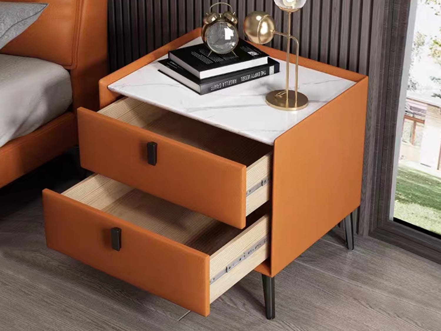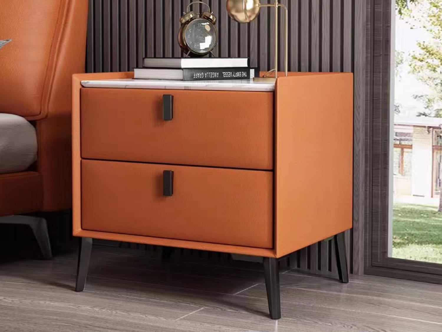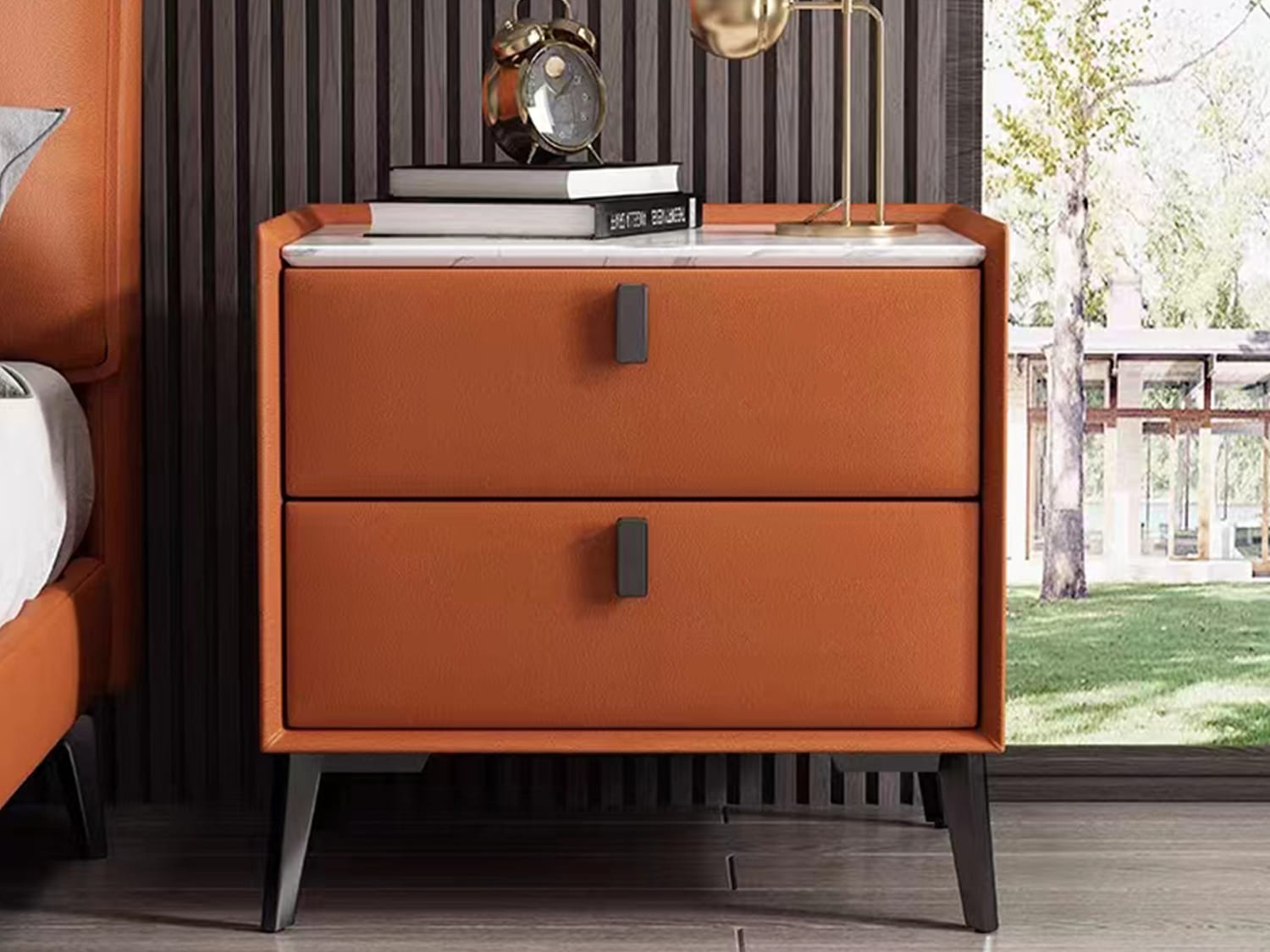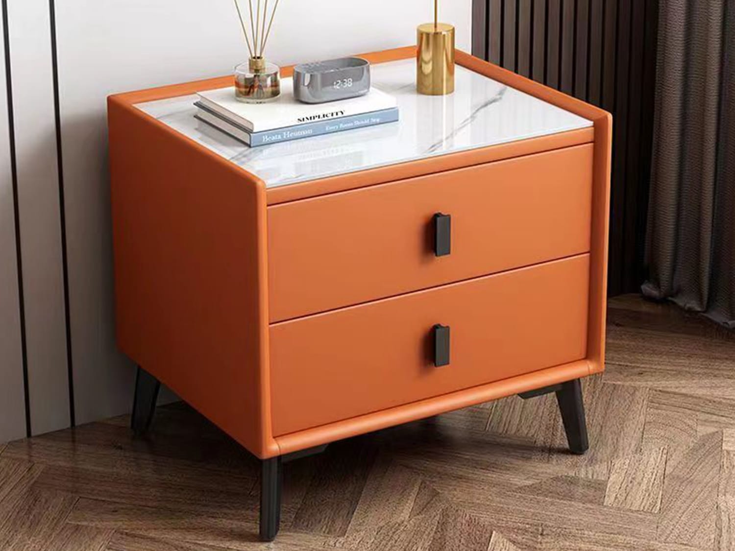 Our Cina Bedside Table is a stylish and versatile piece that’s good in any room. It features two drawers, with one of them providing extra storage space for larger items. The bedside table is made of solid hardwood and finished in a sleek orange hue. A great way to add extra storage space to your room! In the tradition of its parent table, the Cina Bedside Table is modern in its design and elegant in its finish. Its understated style blends with any décor and space, while still managing to make a grand statement.