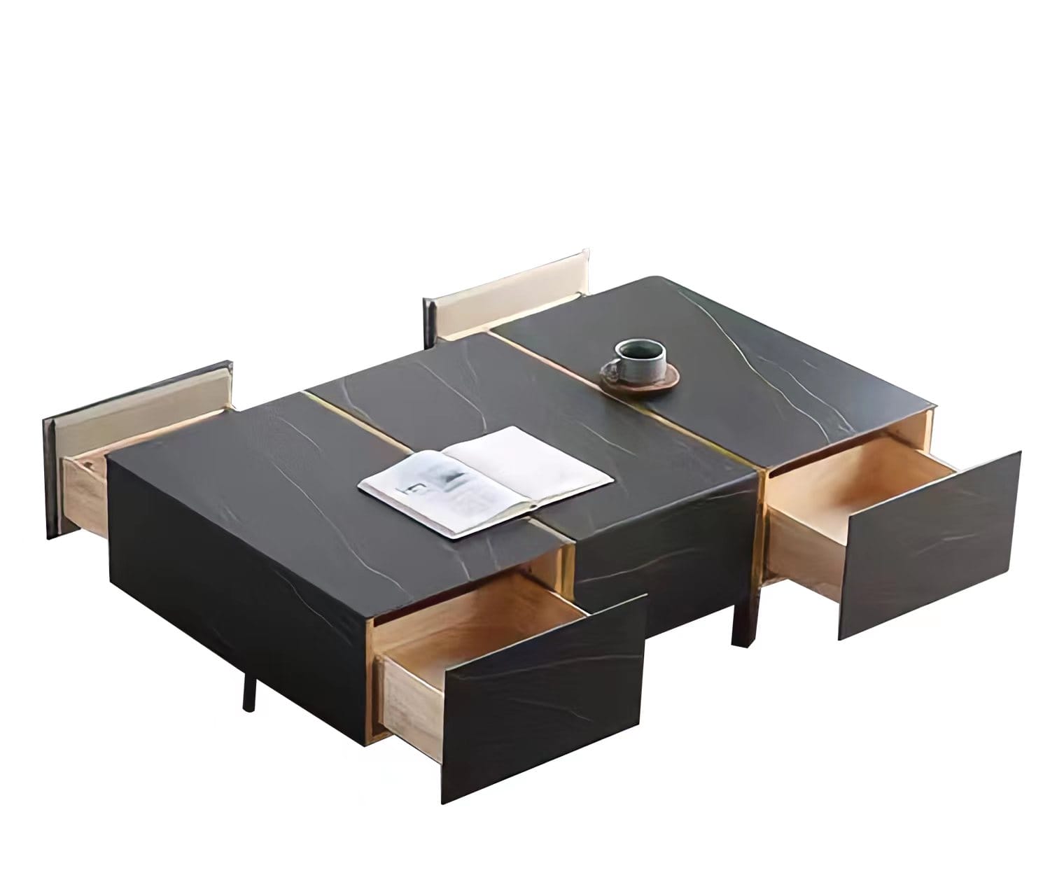 Cir Coffee Table-Black Sintered stone with Golden frame