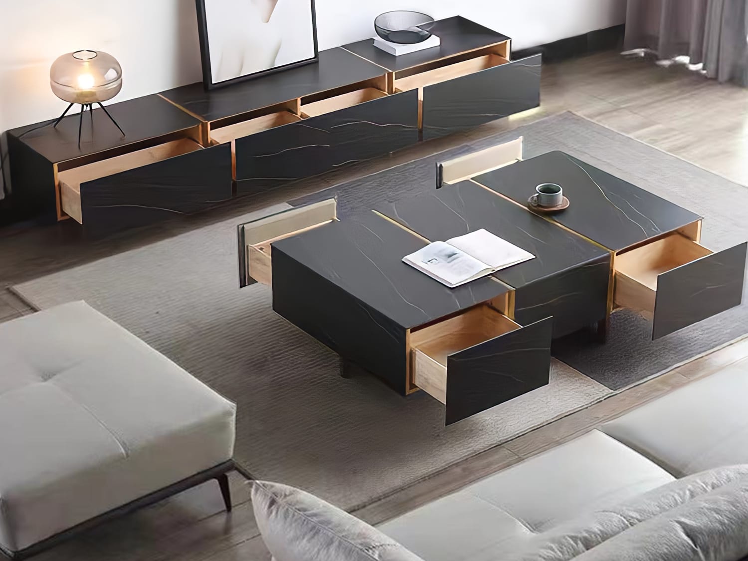 Cir Tv Unit-Black with Golden frame