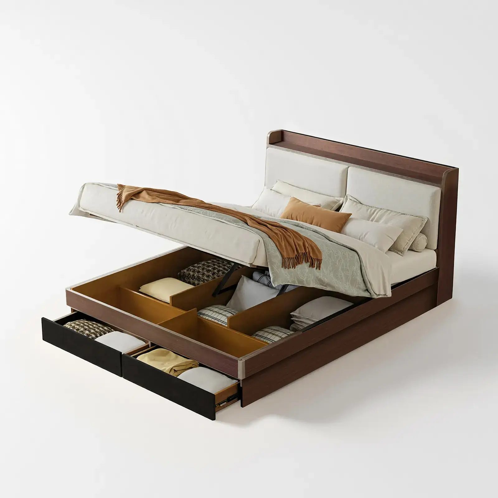 Cortez Modern Wooden Multi Functional Gas Lift Bed With Storage Frame-Queen