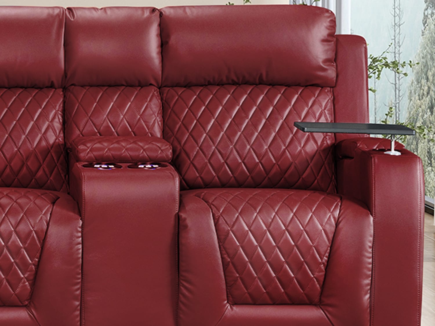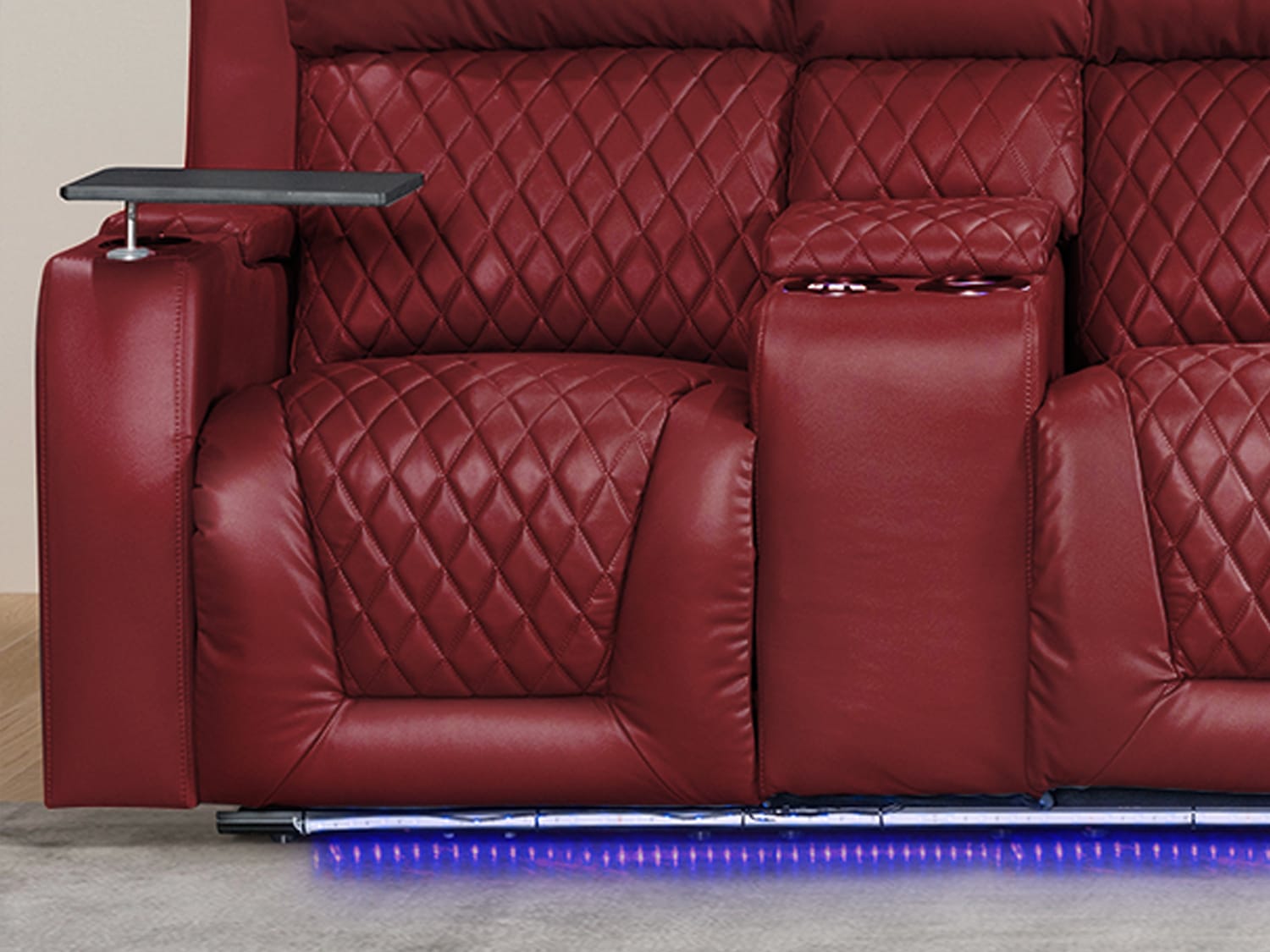 The Cosgrove—ELECTRIC Cinema 4-seater recliner is designed for functionality and convenience. It features armrest storage, perfect for keeping remote controls, magazines, and other essentials close at hand. With cupholders and tray tables, you can enjoy your favourite snacks and beverages without any spills or inconvenience.