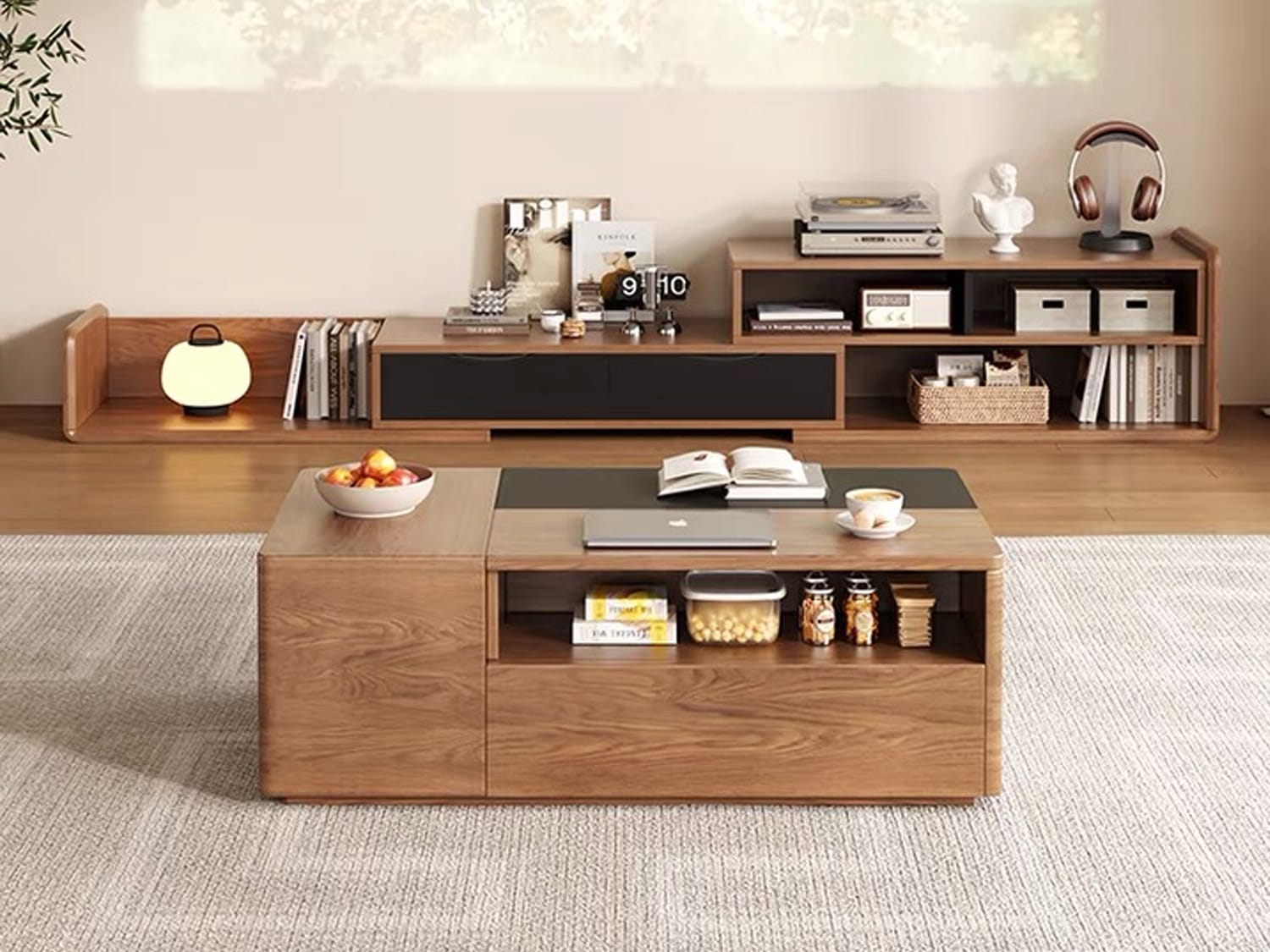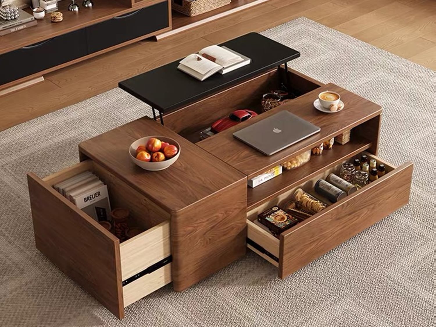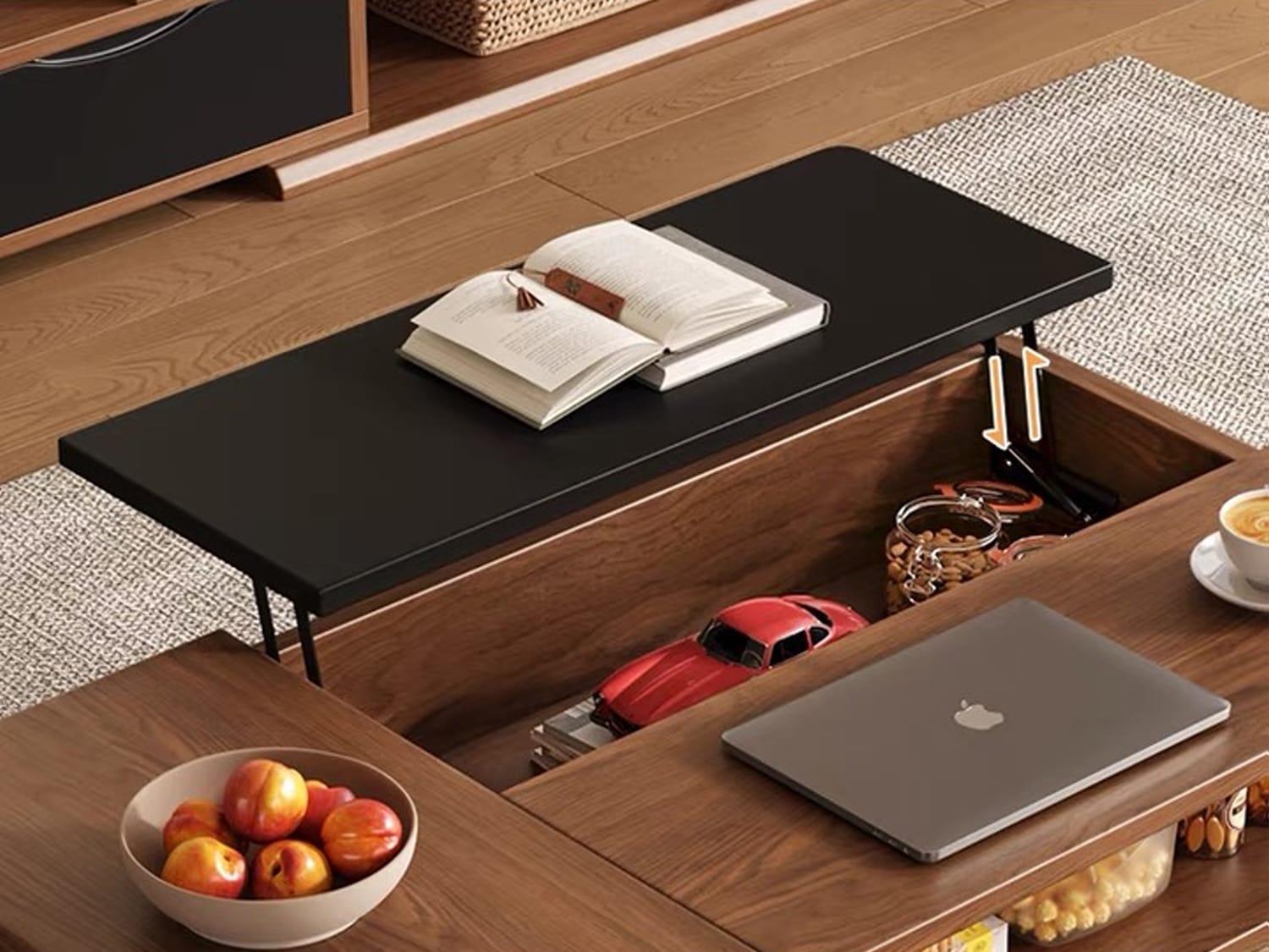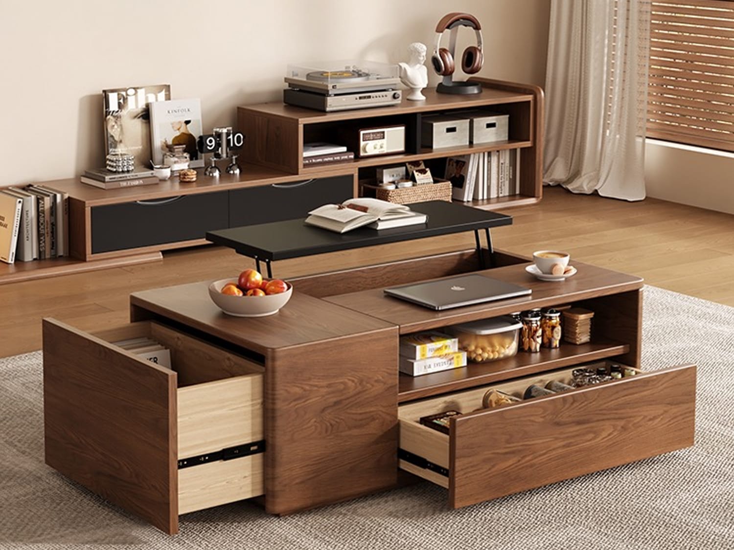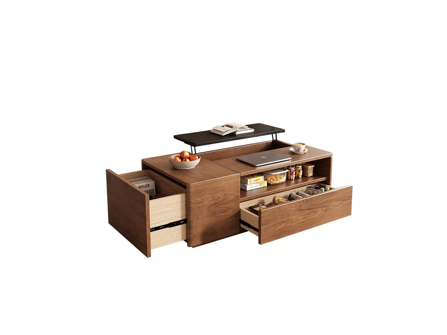Elevate your living room with the Cressy Lift-Top Desktop with Drawer Wood Coffee Table, featuring a modern style, strong bearing capacity, high temperature resistance, waterproof surface, oil stain resistance, storage drawer, ample storage space, extendable desktop, and mature wood construction. This versatile and elegant coffee table offers practicality, sophistication, and ample storage solutions, enhancing your home with its contemporary design.