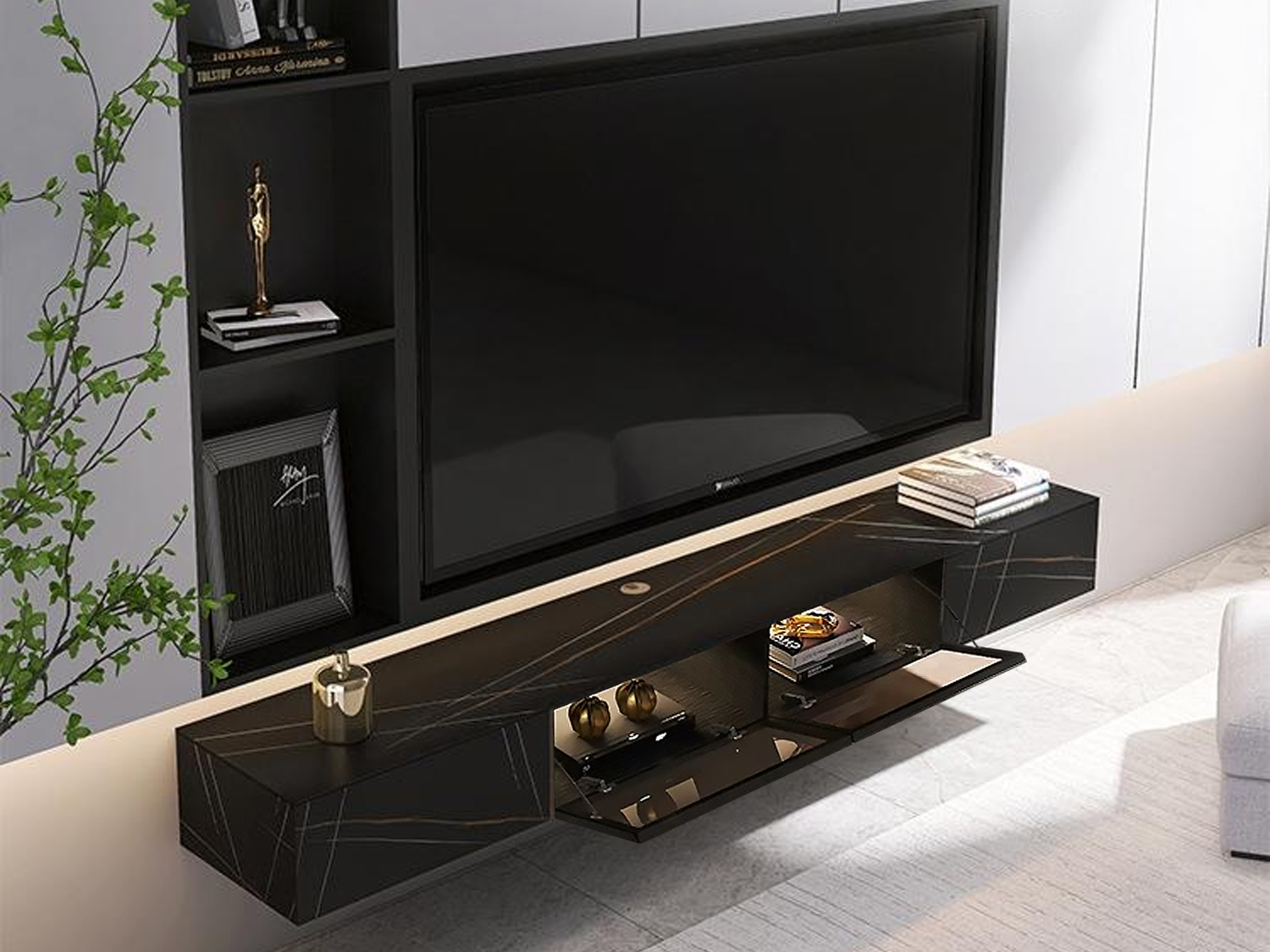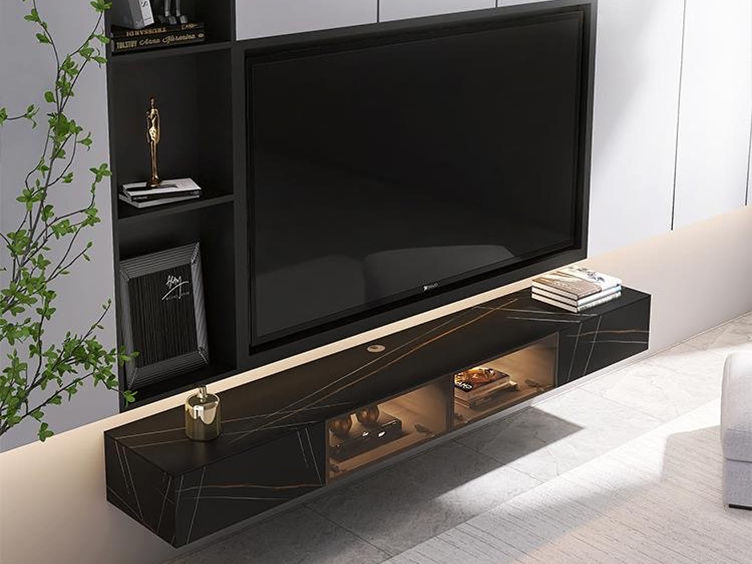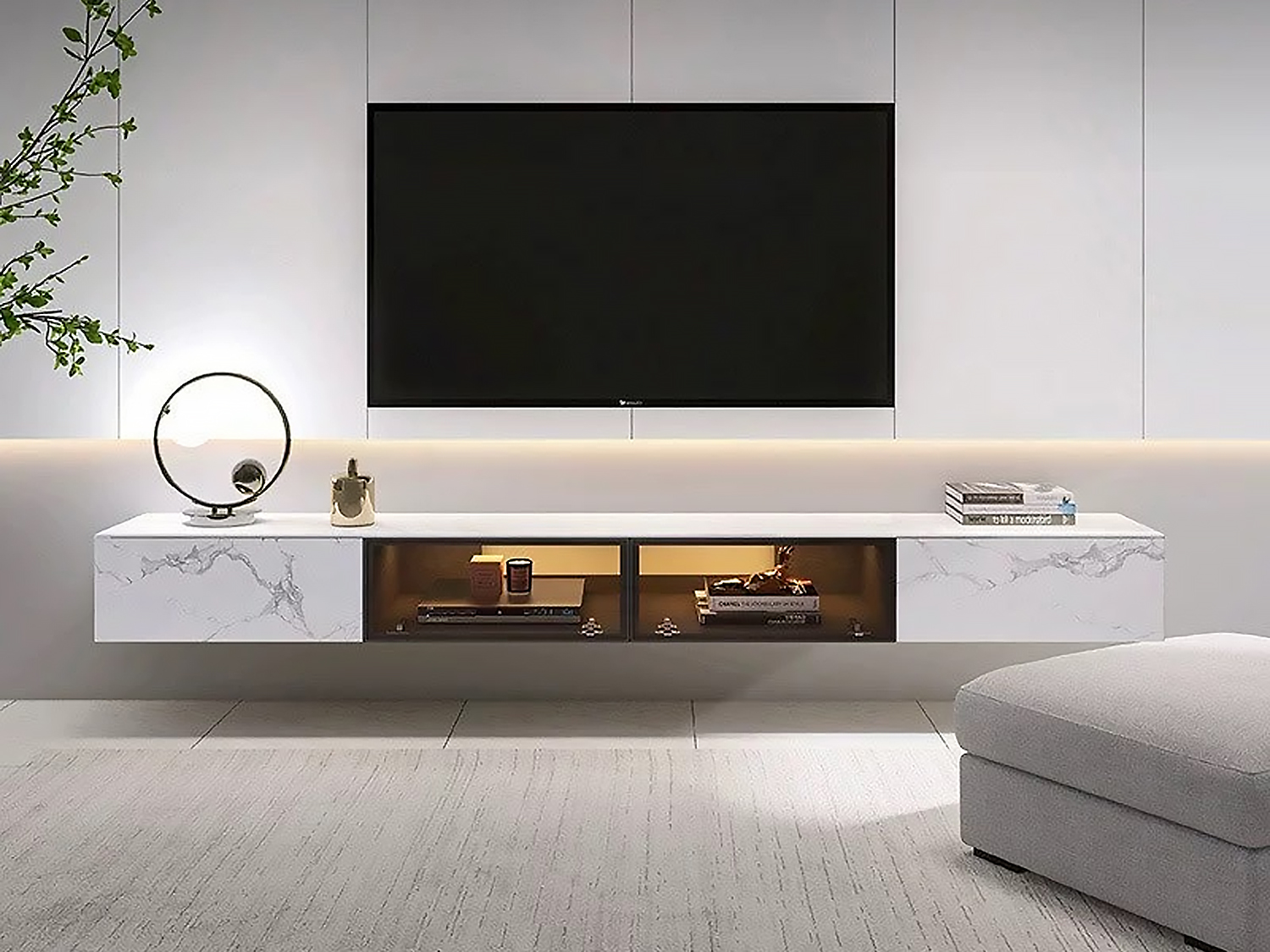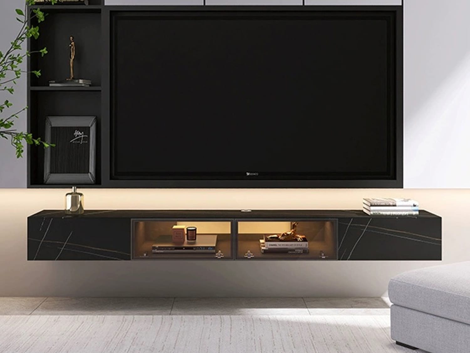 The Dimas Modern Floating Sintered Stone TV Unit in White/Black is a contemporary and versatile piece designed to enhance your living space.