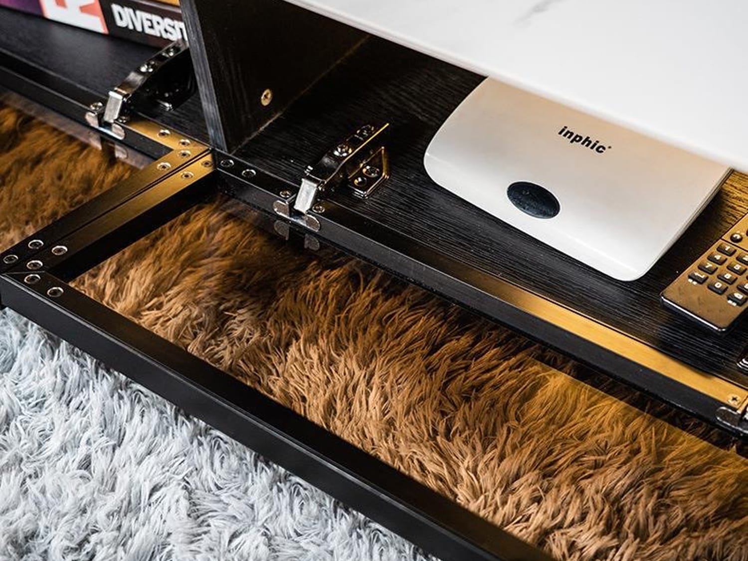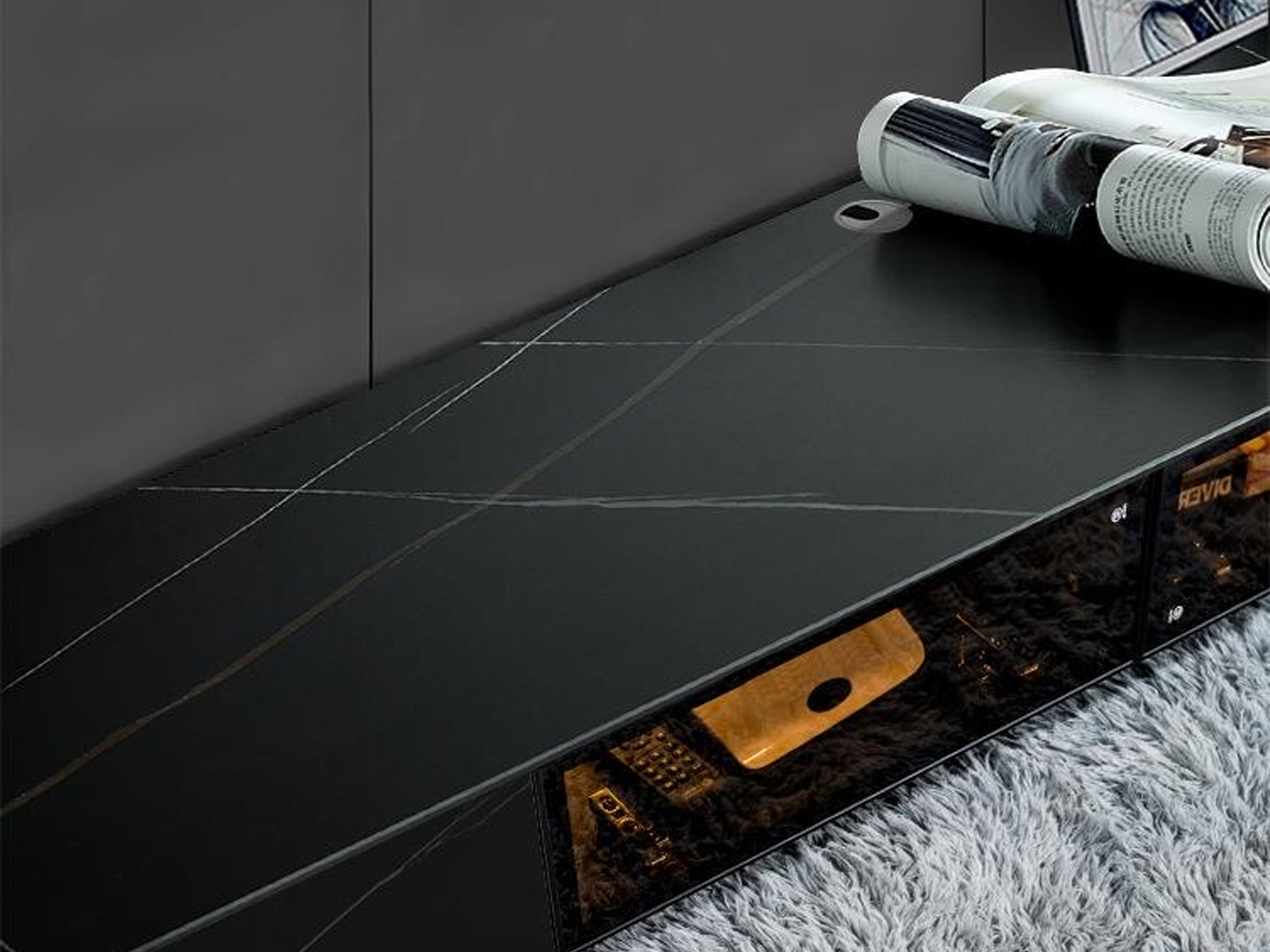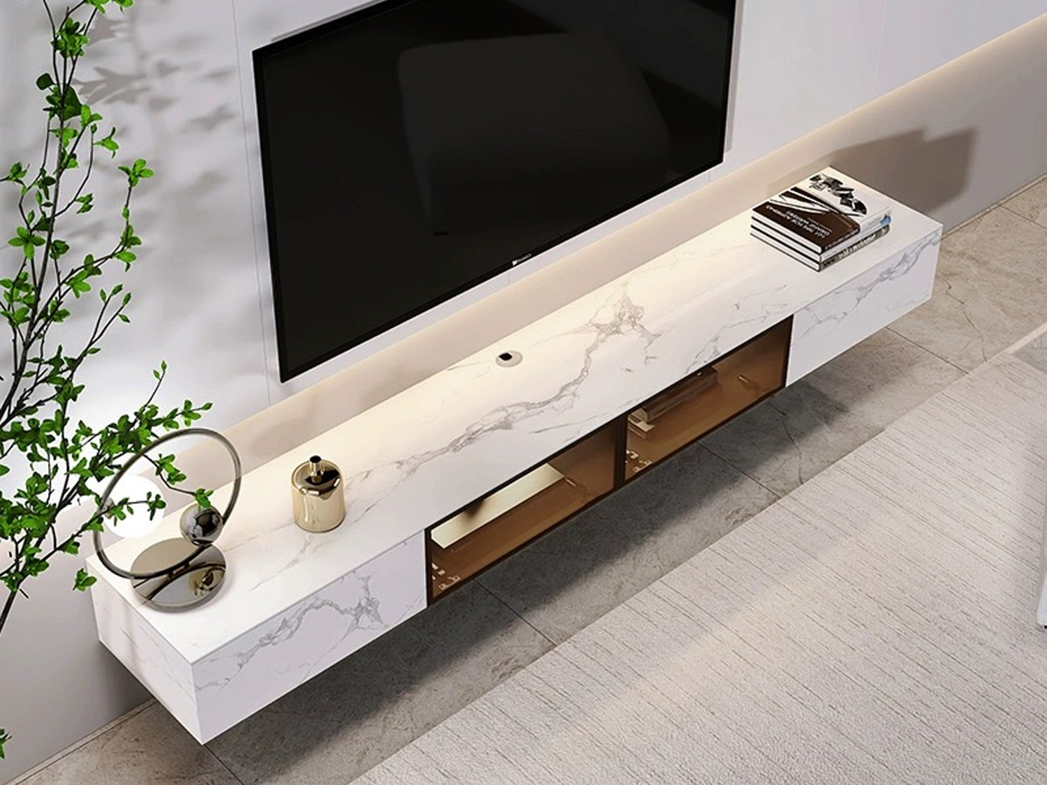 Crafted with waterproof and moisture-proof materials, this TV unit is built to withstand everyday wear and tear. Its sintered stone construction imparts wear and scratch resistance, as well as compression and shock resistance. The unit also boasts high-temperature resistance, adding to its durability.