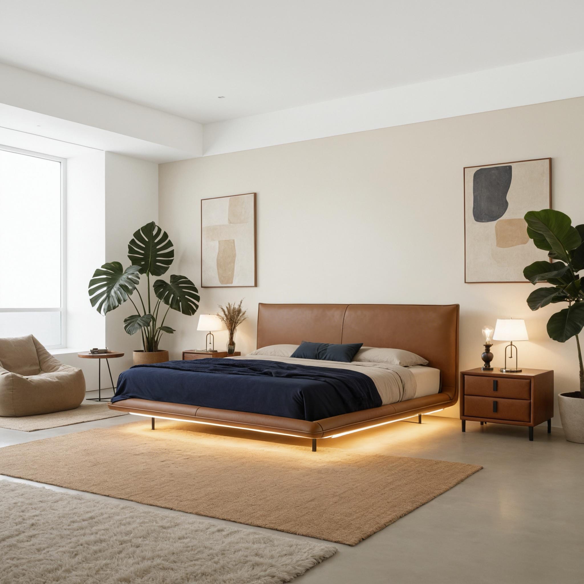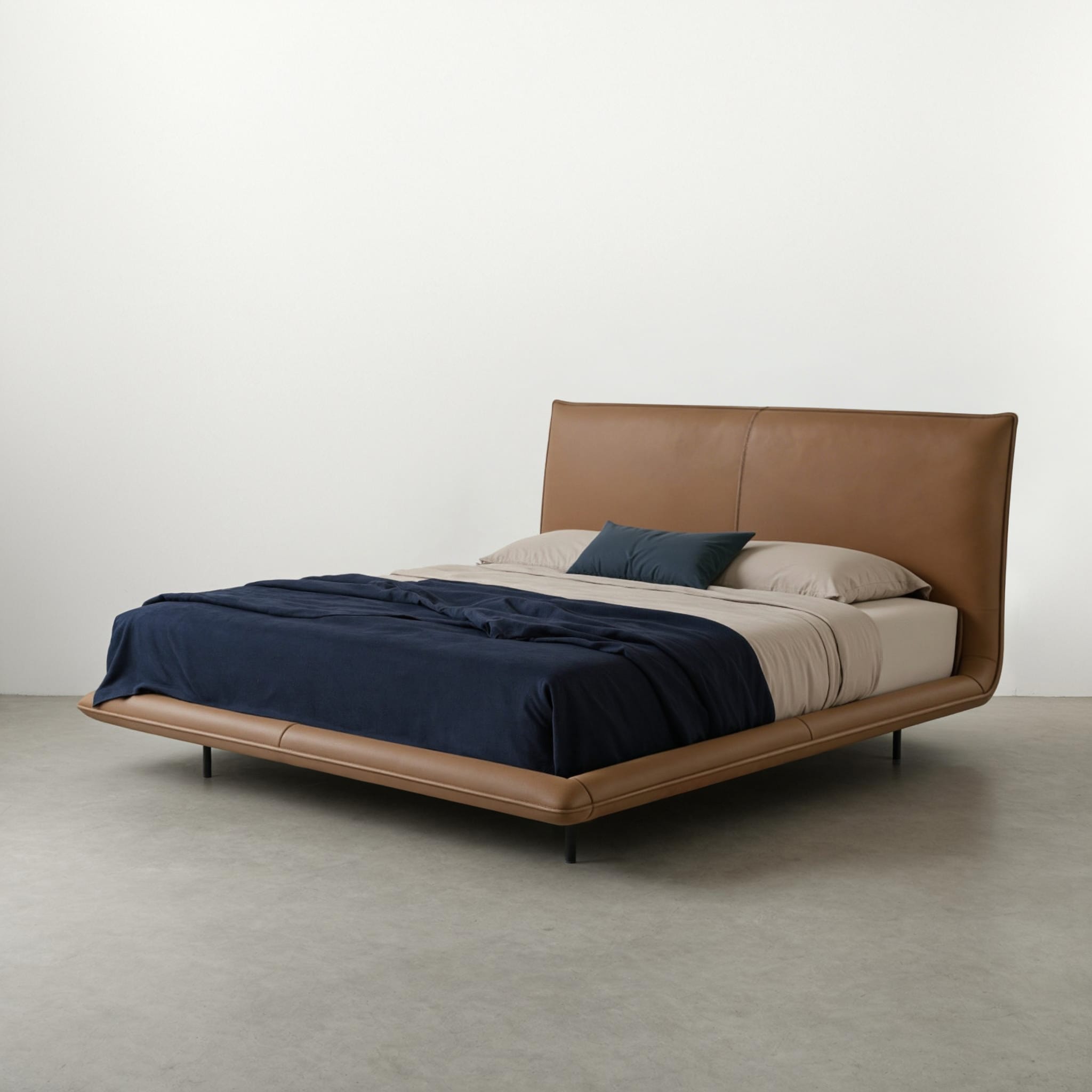 Dora Deluxe Floating Leather Bed Frame-Khaki/Brown-Queen/King