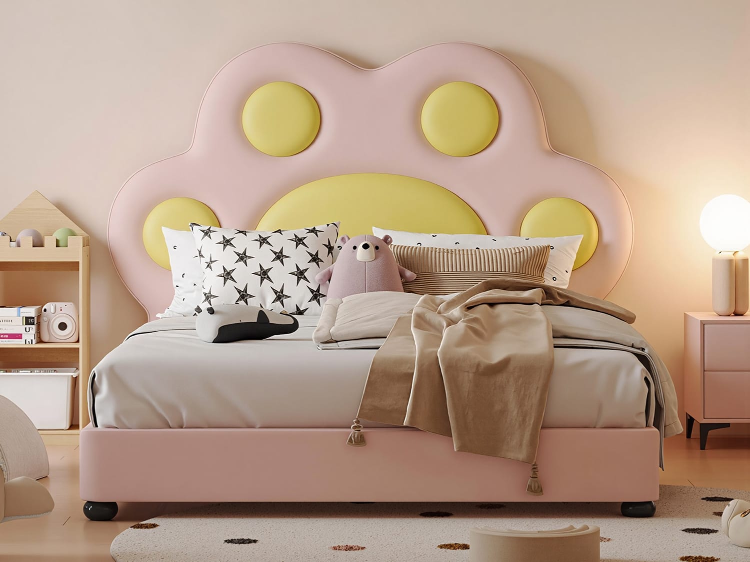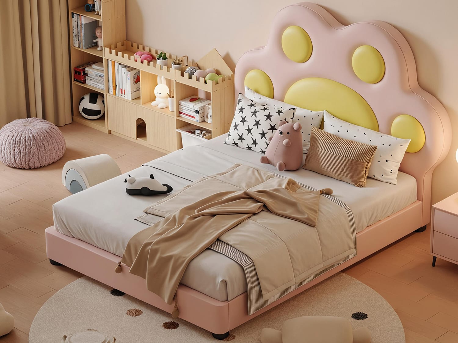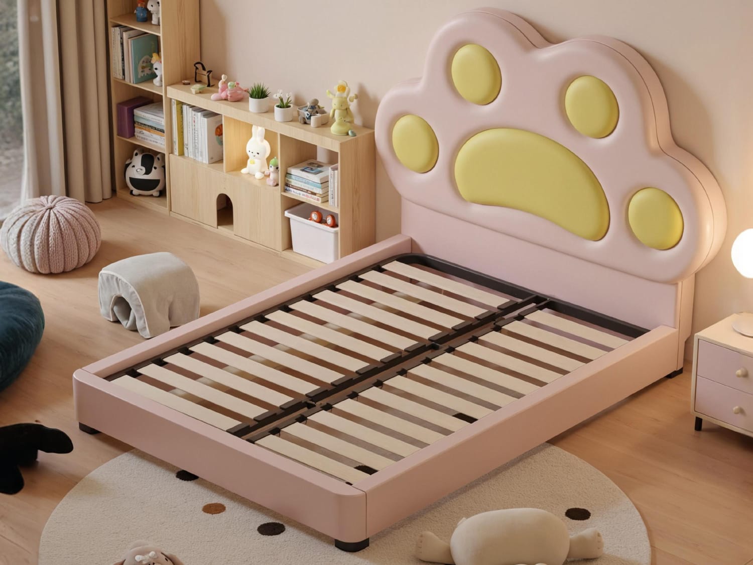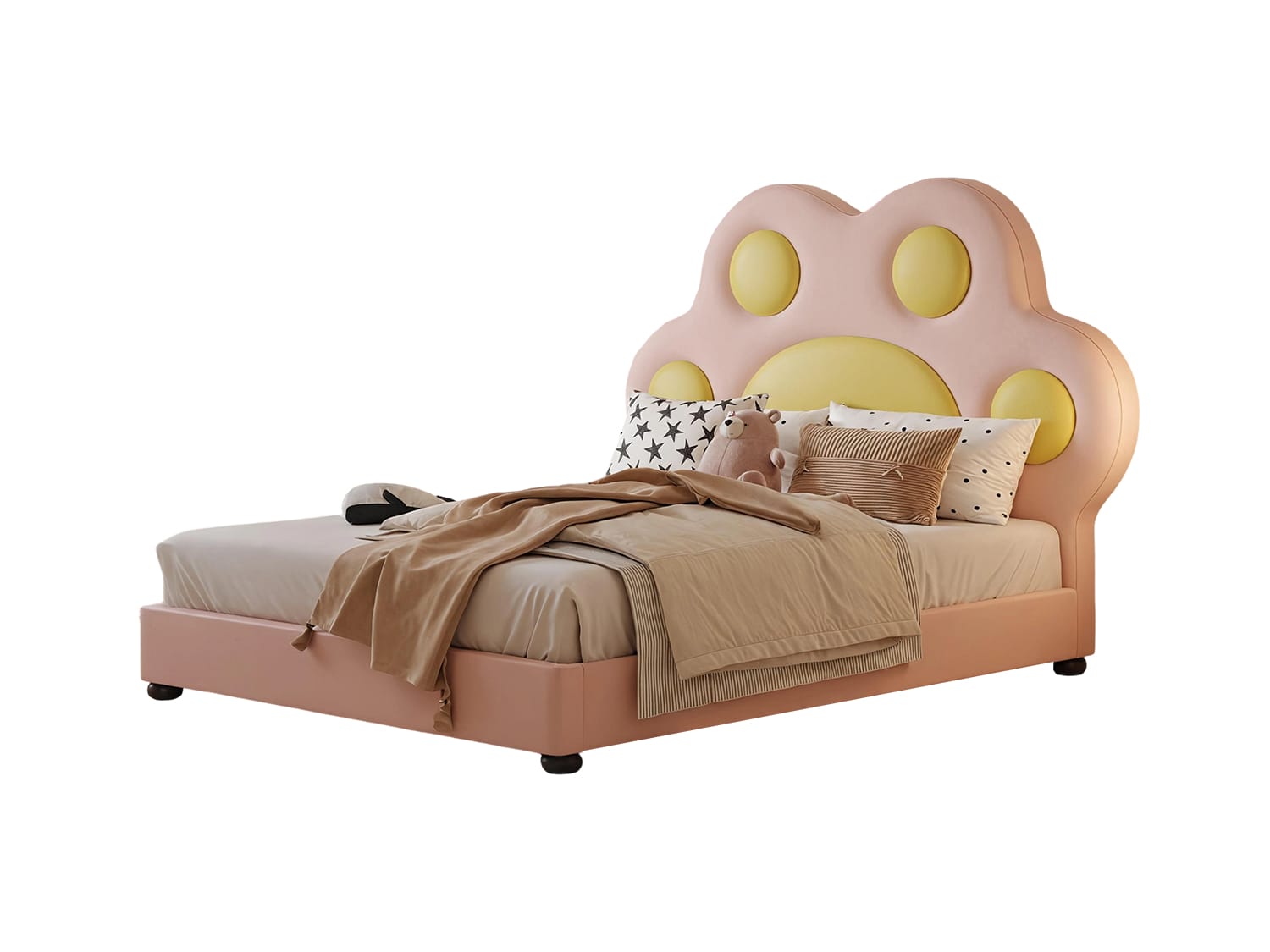The Gallatin Kid’s Bed Frame combines safety, comfort, and fun with its round safety corners and creative cartoon design, making bedtime exciting. Built with noise-reduction bed slats for peaceful sleep, it ensures durability with a sturdy metal, solid wood, and plywood frame. The comfortable, soft microfiber leather upholstery, paired with high-density foam padding, provide a cozy resting space. Available in King Single, Double, and Queen sizes, this stylish yet practical bed frame is perfect for growing kids.