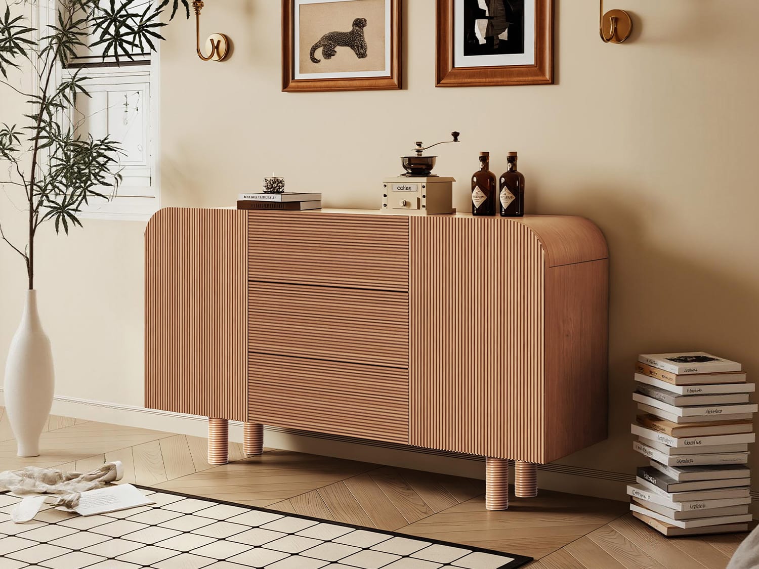 Gatevay Modern Storage Cabinet/Buffet-Natural/Walnut-140CM