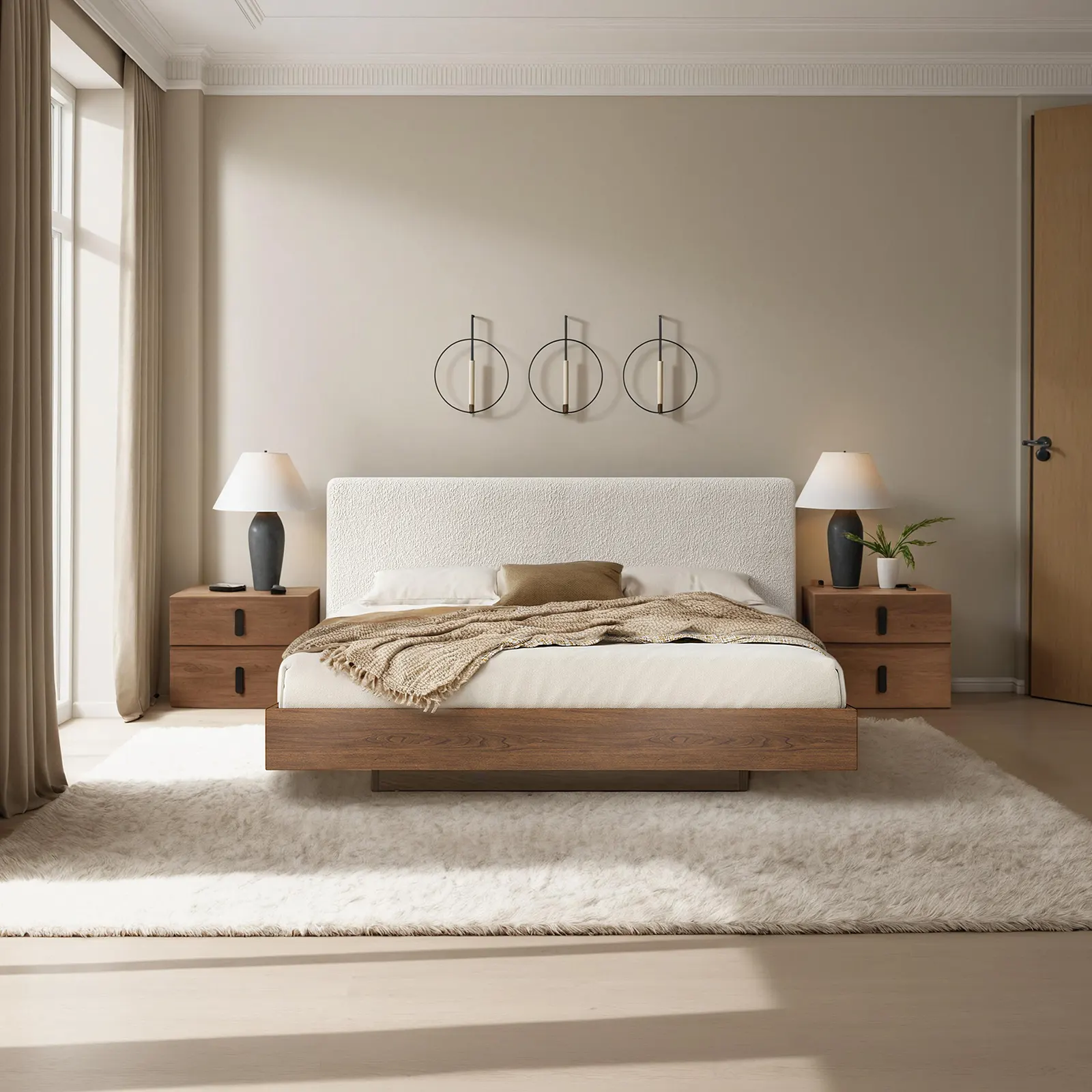Haag Floating Bouclé Bed Frame-Queen/King