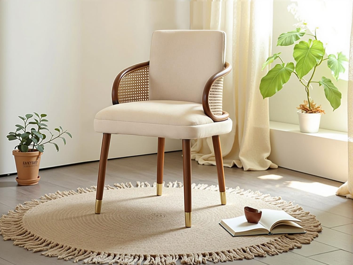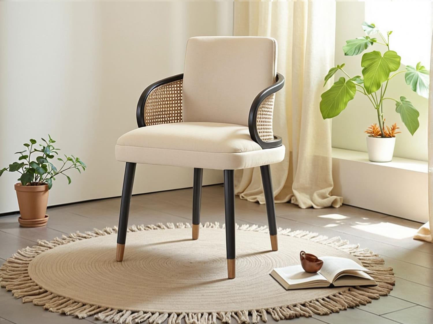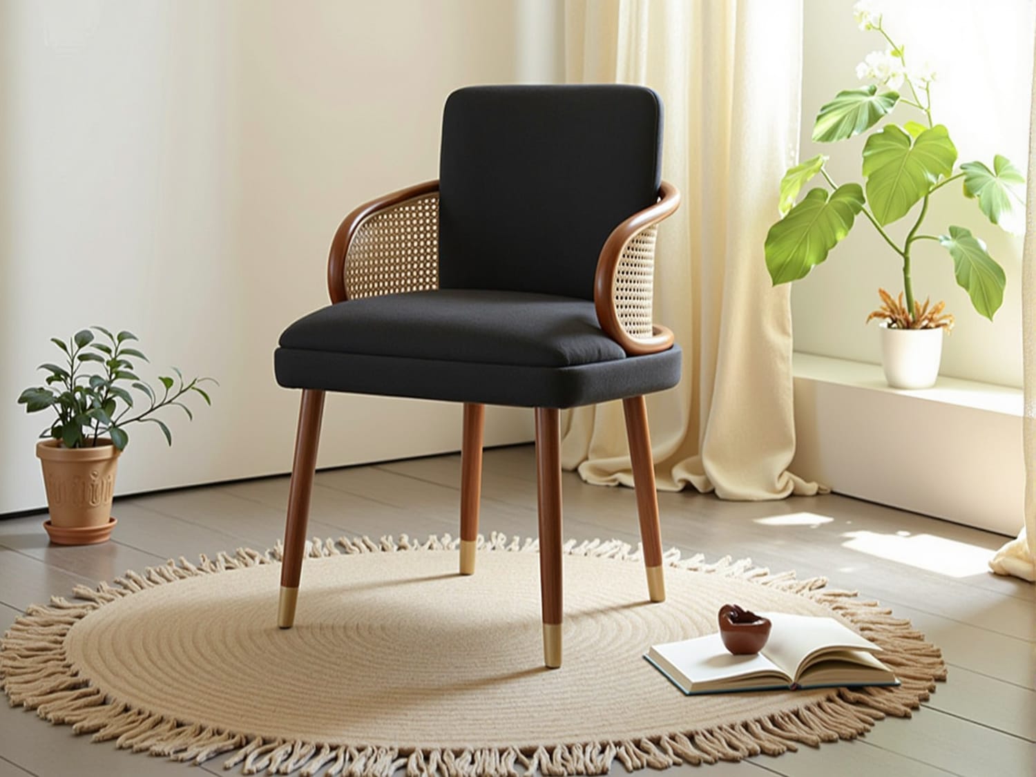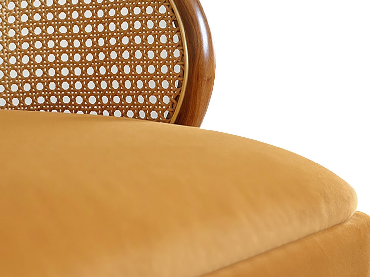 Elevate your dining experience with the Hepburn Modern Dining Chair, blending rich velvet suede upholstery with natural rattan accents in sophisticated Black, Off White and Ochre. The harmonious combination of plush fabric and woven texture creates visual depth, while the solid wood frame ensures lasting durability. Designed for both comfort and style, its gently curved backrest supports leisurely meals and lively conversations. This versatile piece transitions effortlessly from everyday family dinners to elegant entertaining, adding a touch of organic modernism to your carefully designed space.
