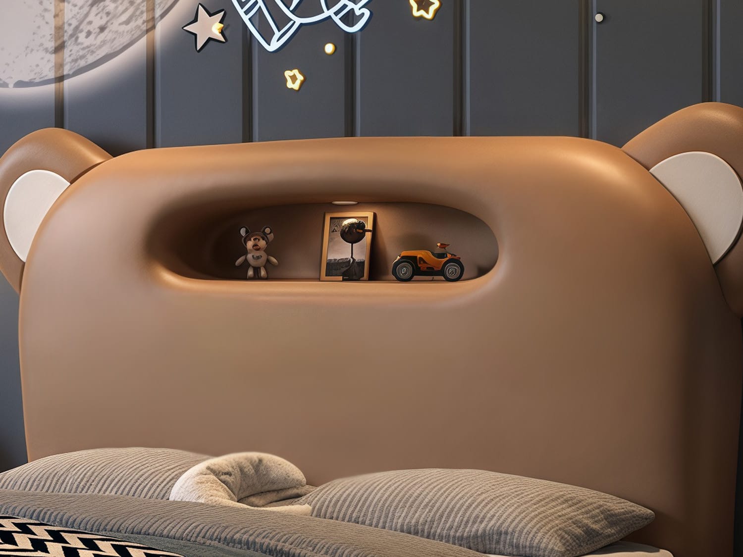 | Feature | Cute and adorable Skin-friendly fabric Soft bag package Head of a bed storage Heightened fence High rebound sponge |