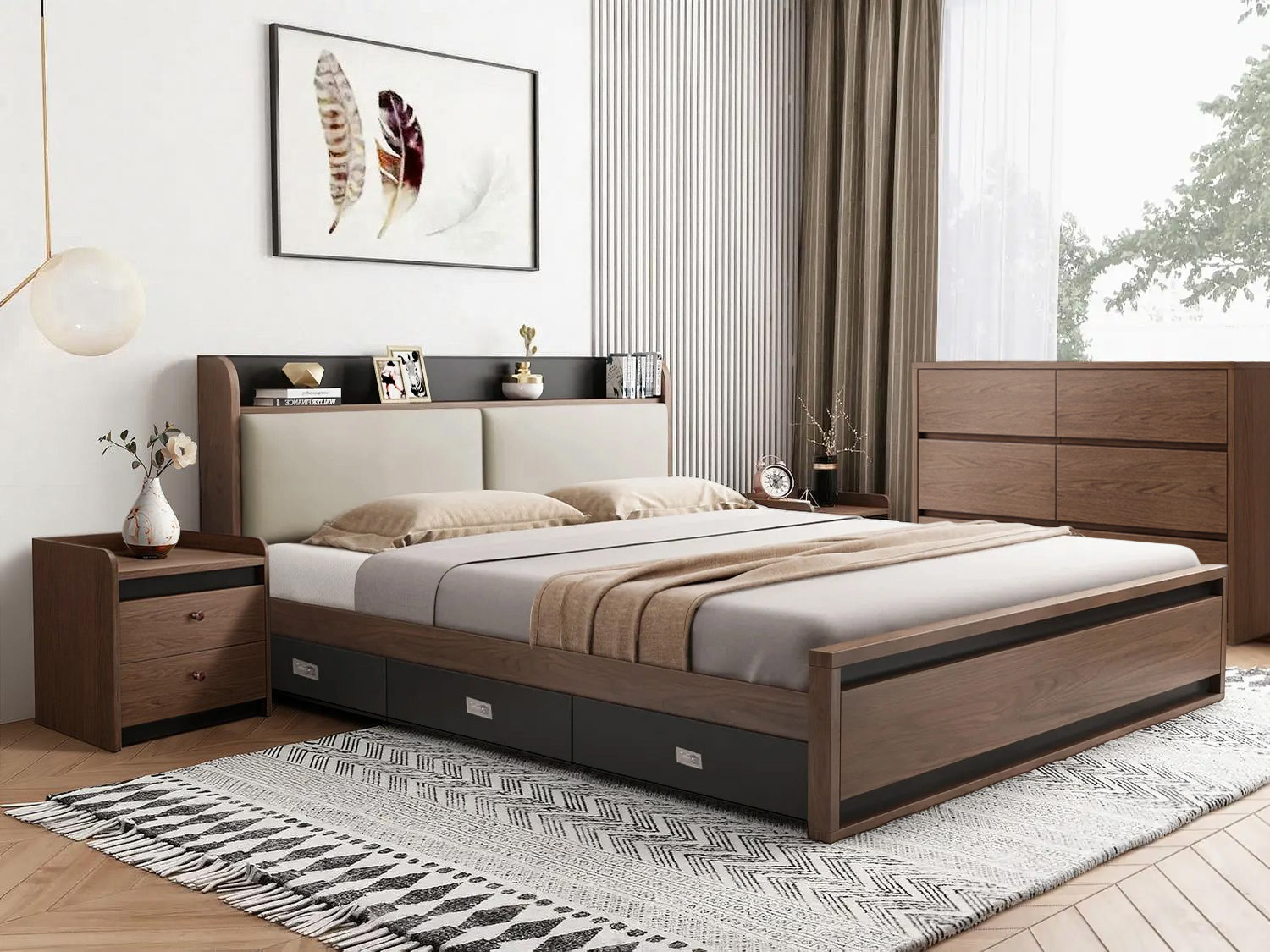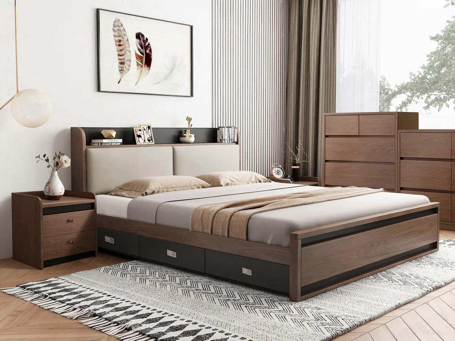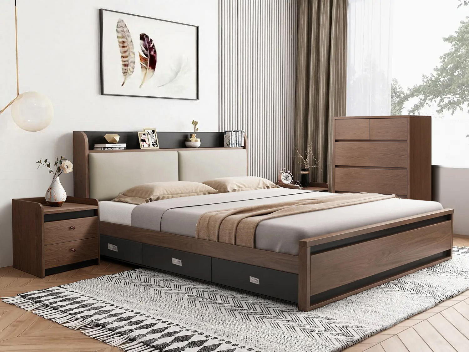 Janice Wooden Multi Functional Bedroom Set- Leather