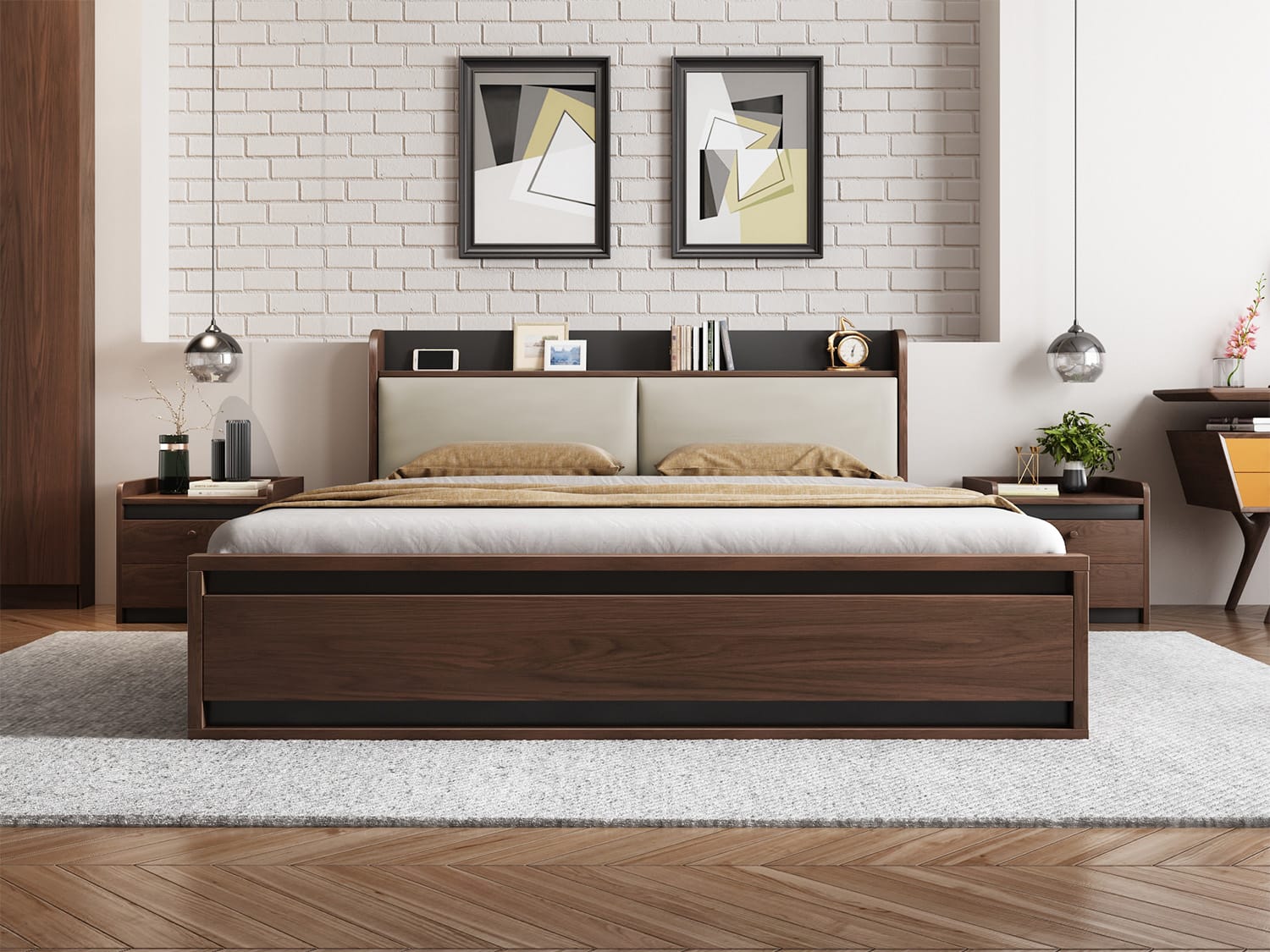 | Dimension | Queen Inner Dimension L203*W153cm Outer Dimension:L227* W159* H98.5cm King Inner Dimension:L203*W183cm Outer Dimension:L227* W189* H98.5cm Bedside table:L50*W40*H45cm |
