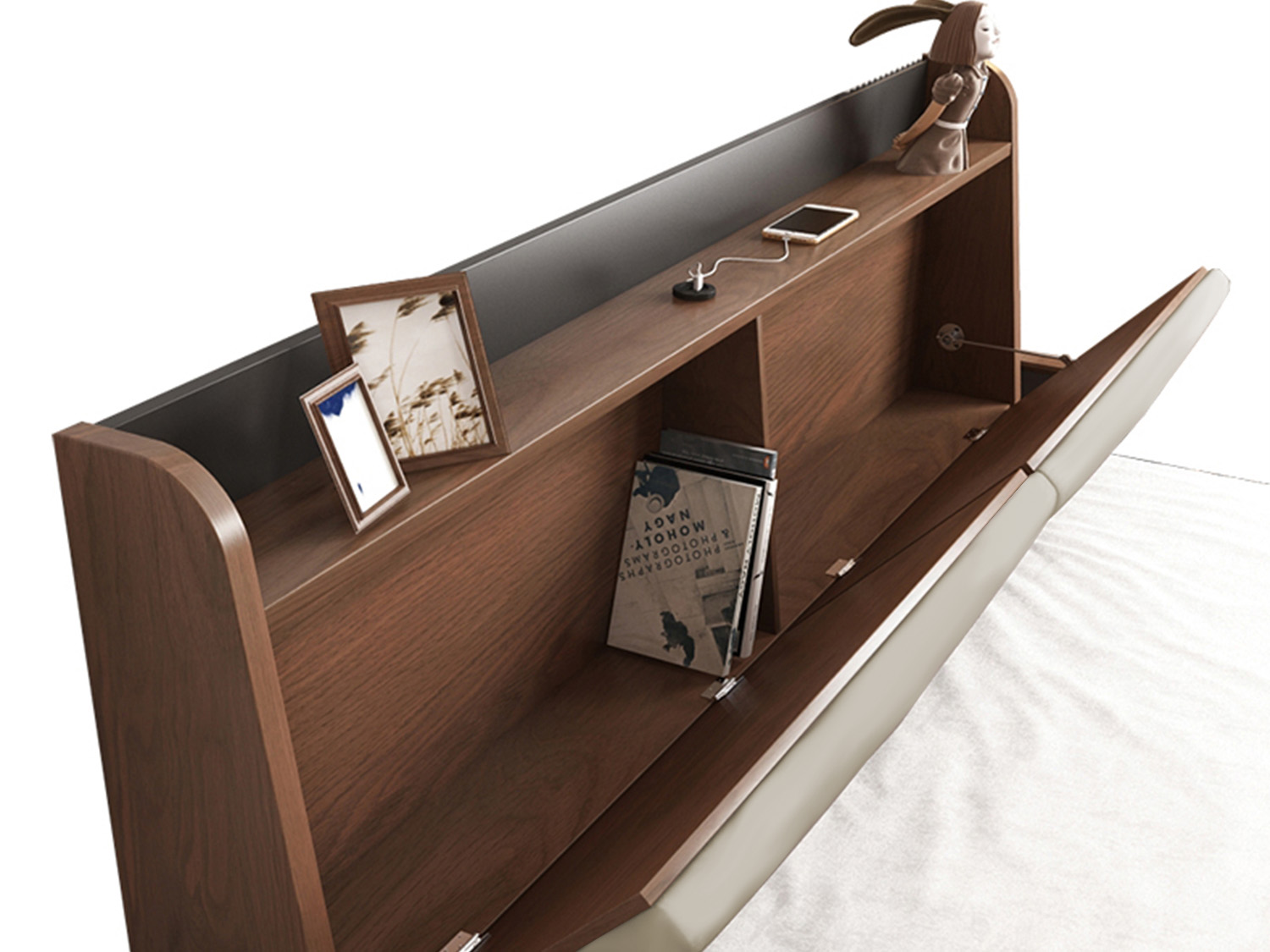 Janice Wooden Multi Functional Gas Lift Bed With Storage- Leather-Queen/King