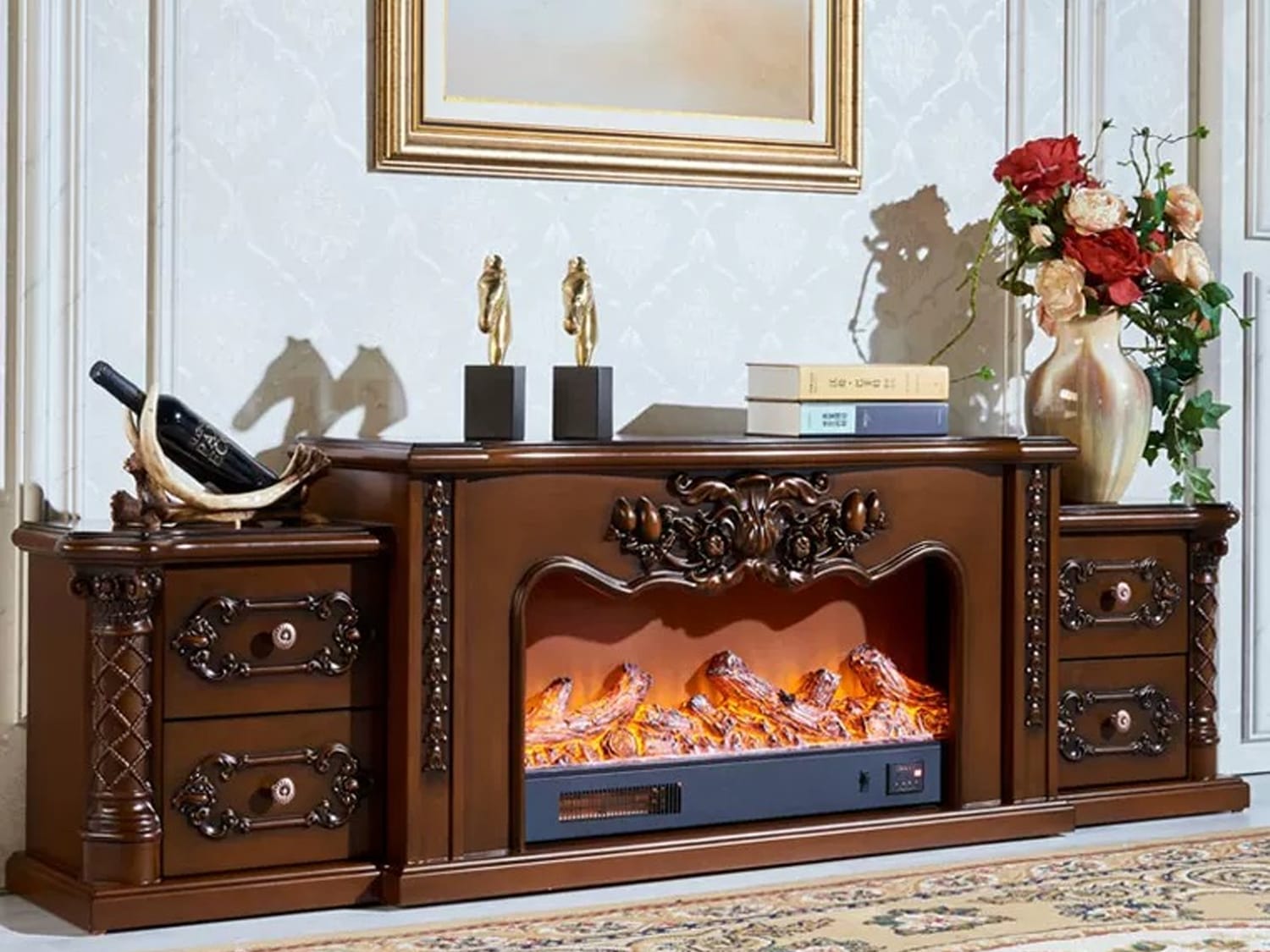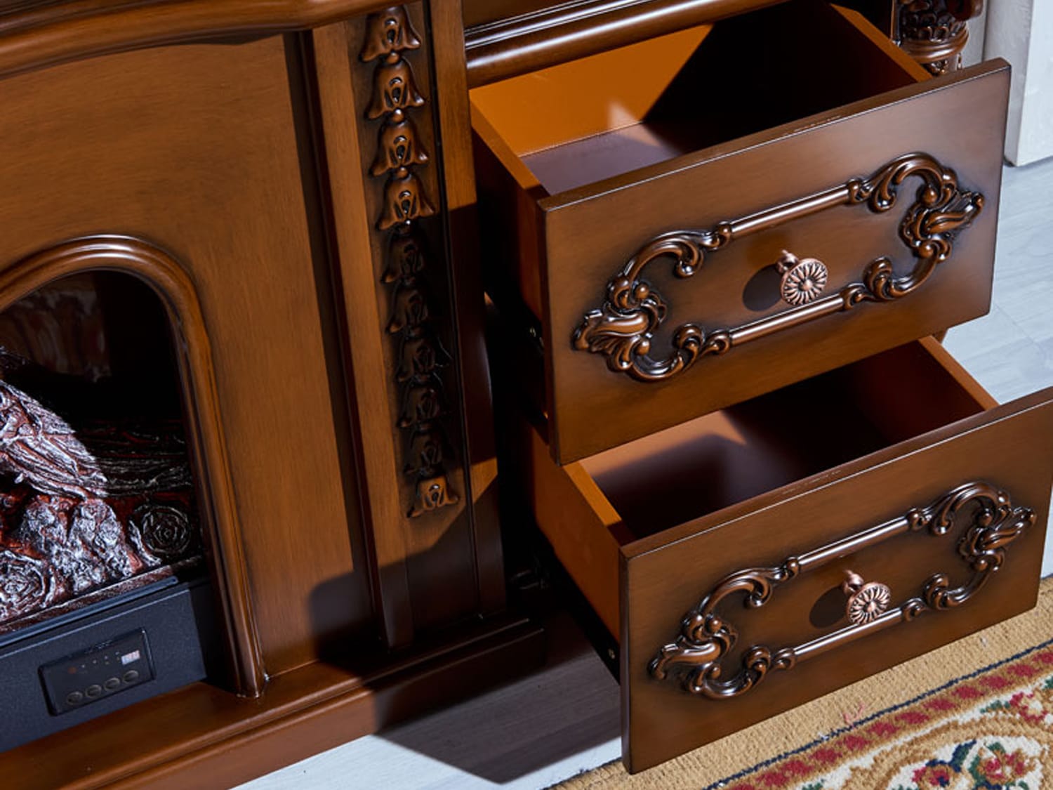 The Kainantu fireplace is designed with integrated storage space, offering both functionality and style, allowing you to display your favorite items or keep essentials within easy reach.Enhancing its practicality, the fireplace features a convenient storage drawer, providing additional space for organized storage, helping to keep your living space tidy and clutter-free.
