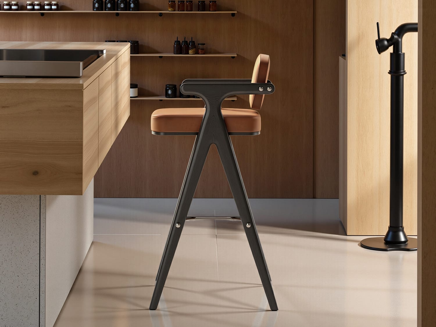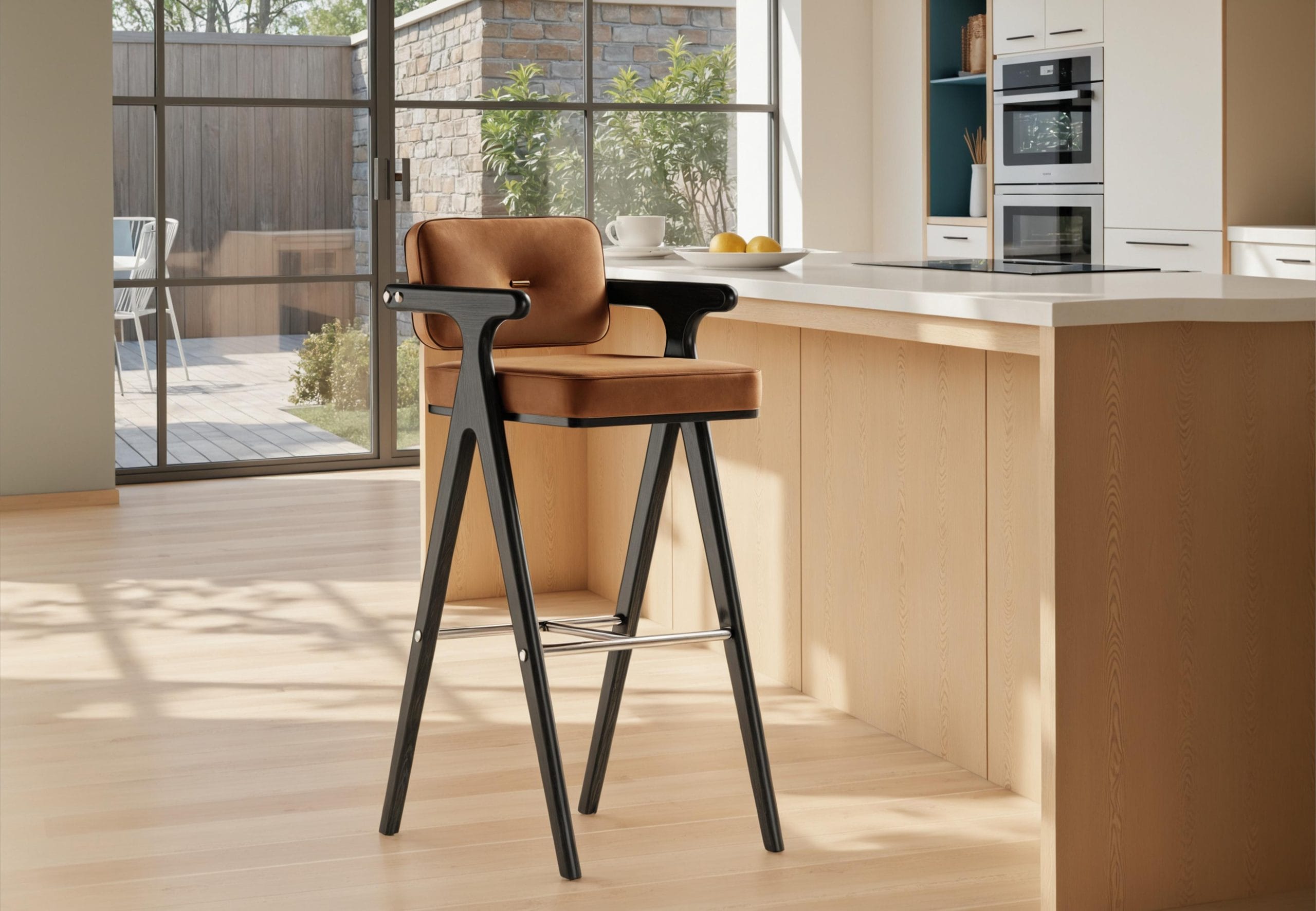 Crafted with a sturdy solid wood frame, it offers durability and a touch of sophistication. Ideal for bars, kitchens, or lounges, the Kall stool combines modern design with lasting quality.