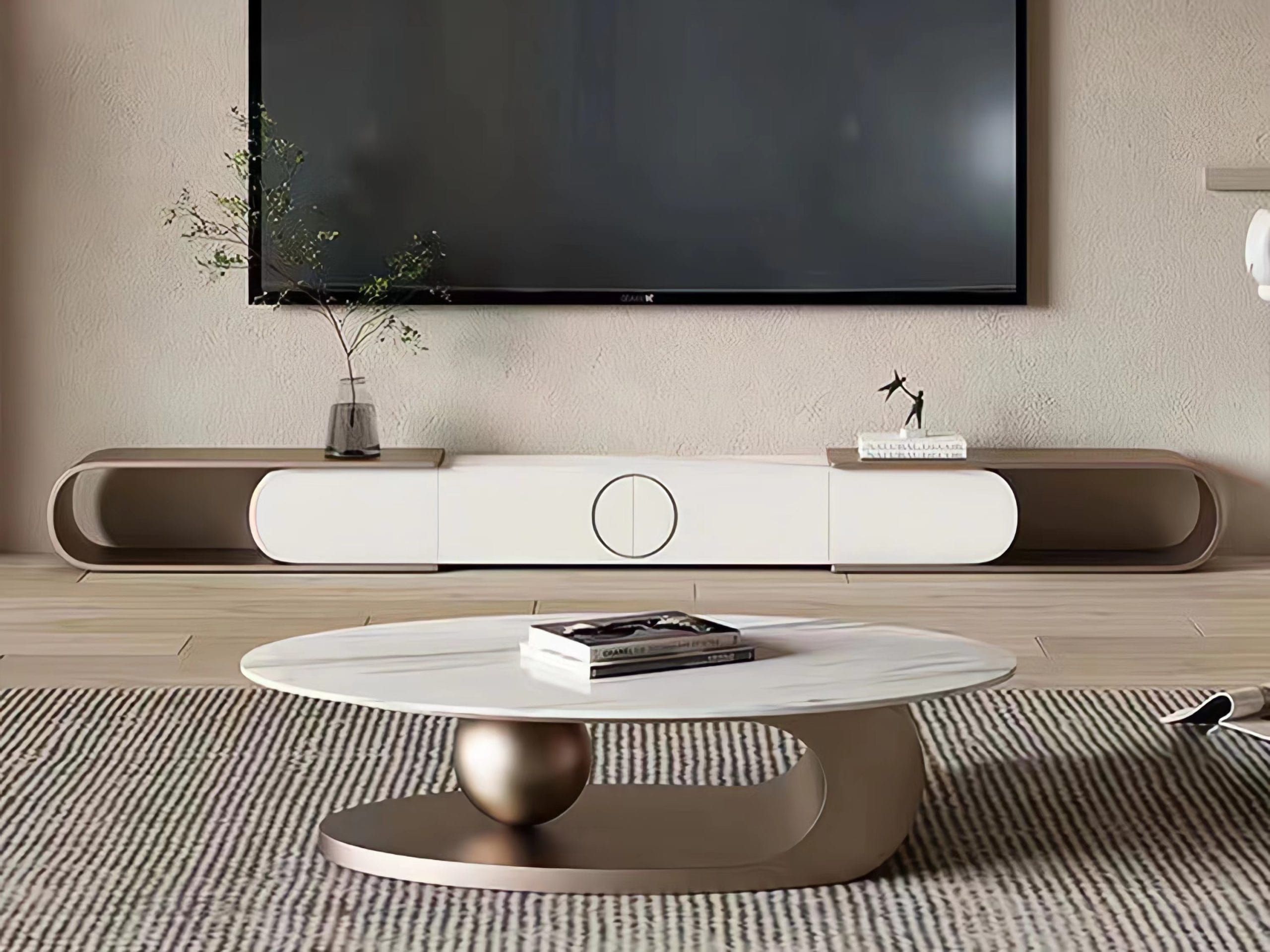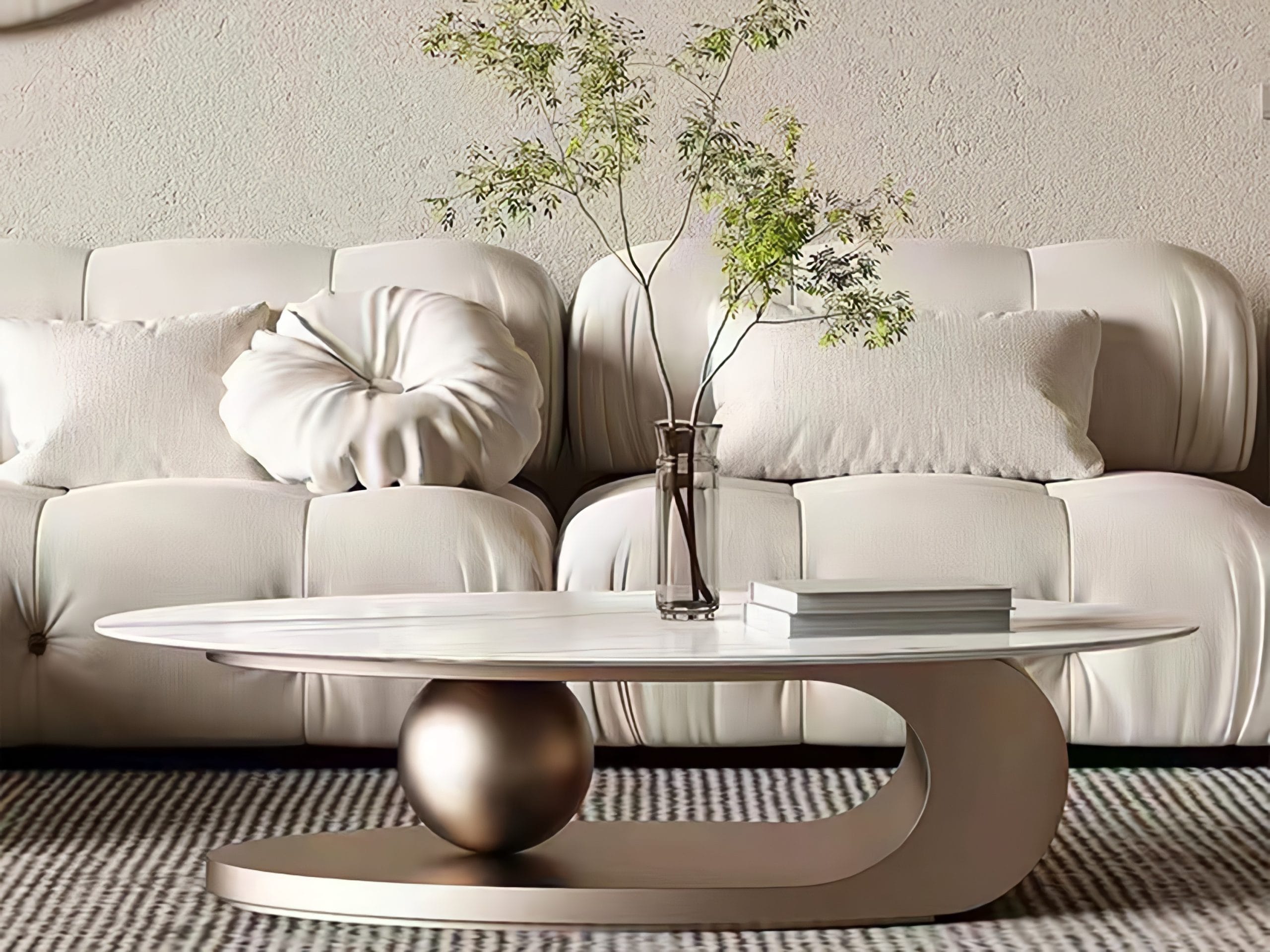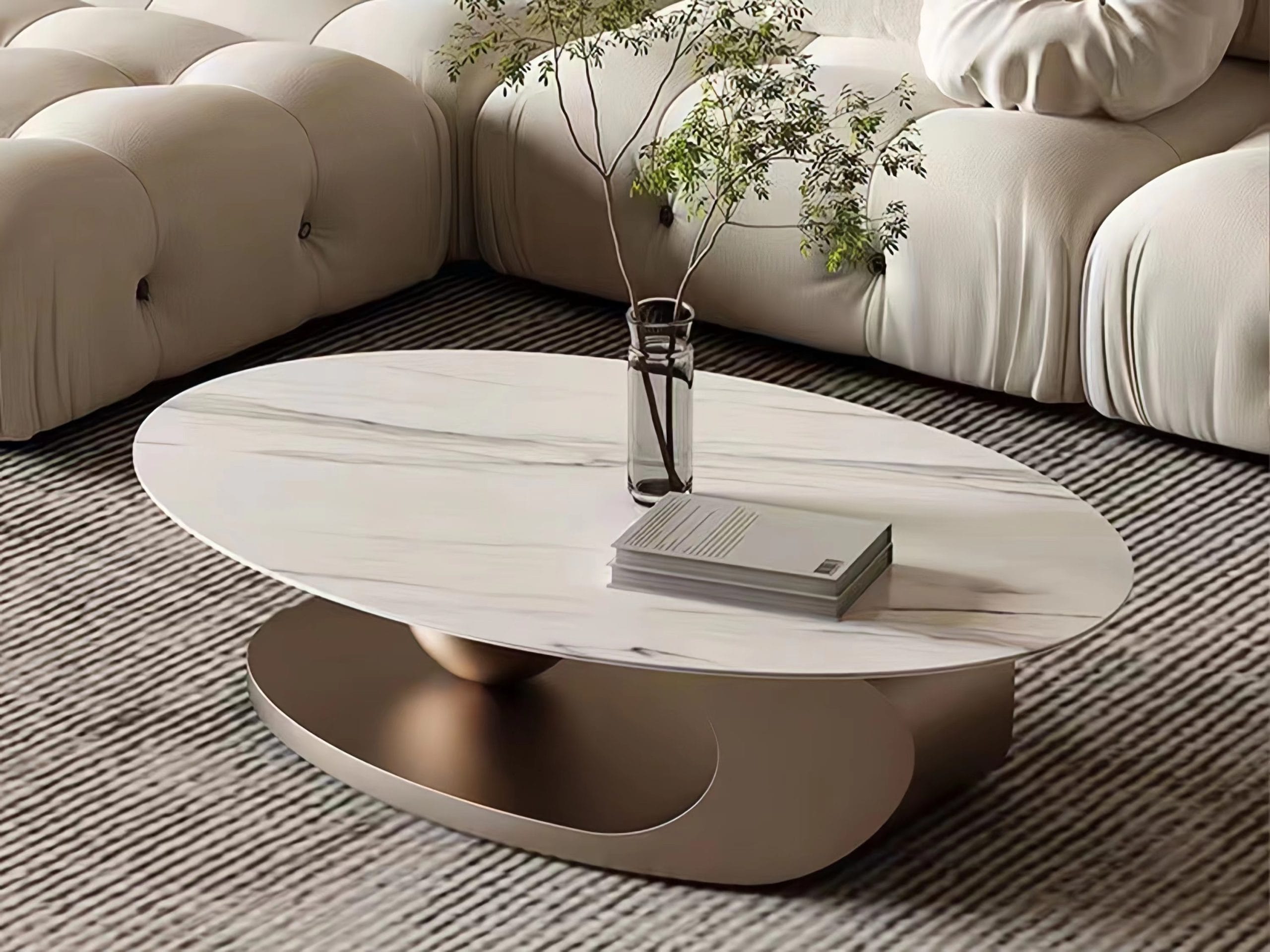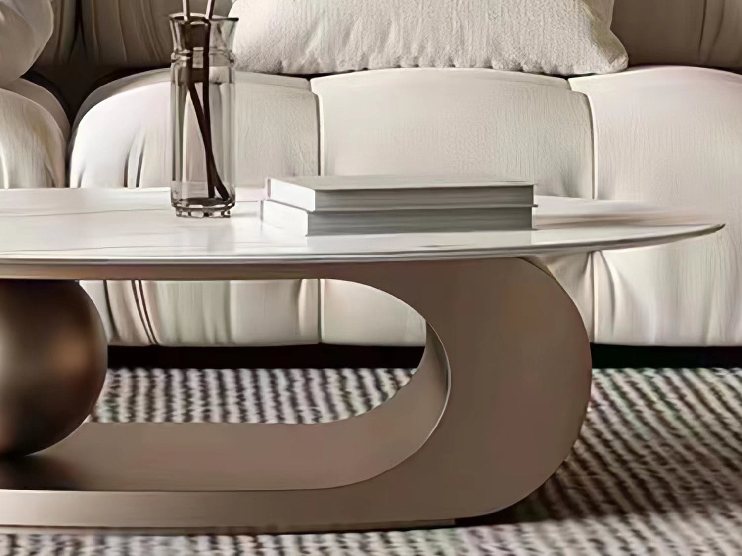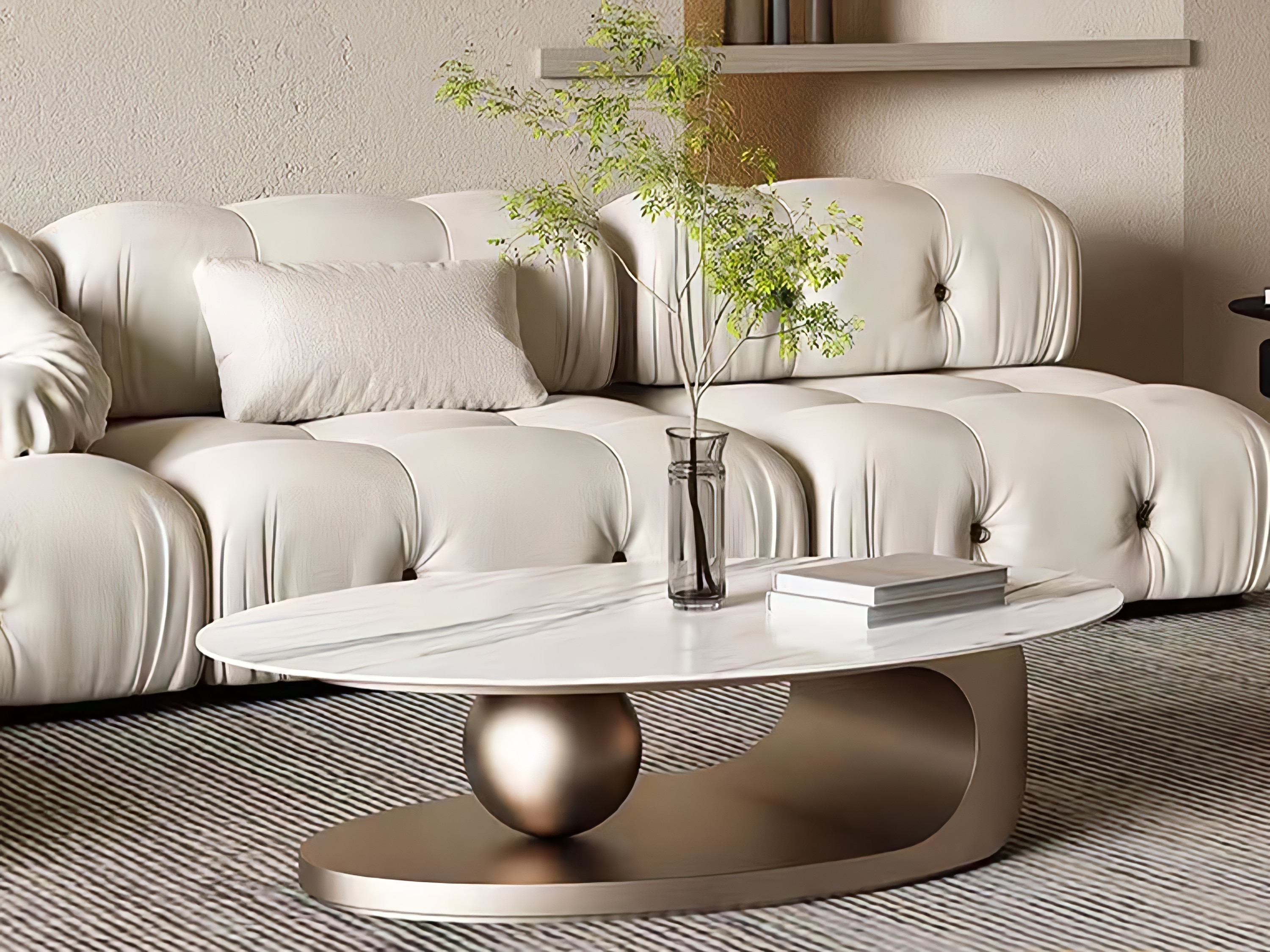 This sleek, modern coffee table is the perfect addition to your living room. Its design features grooves in the wood that add depth and texture, while its rounded corners give it a light and airy feel. The marble stone top is durable and easy to clean, while the stainless steel leg adds a modern touch.