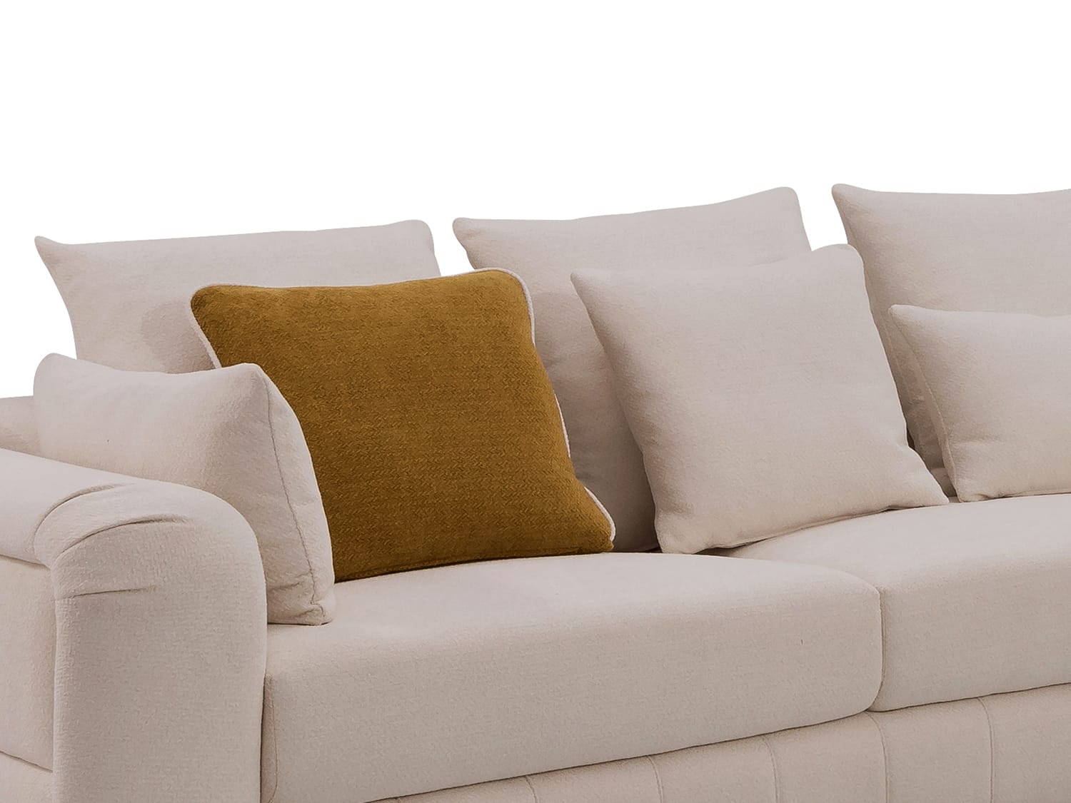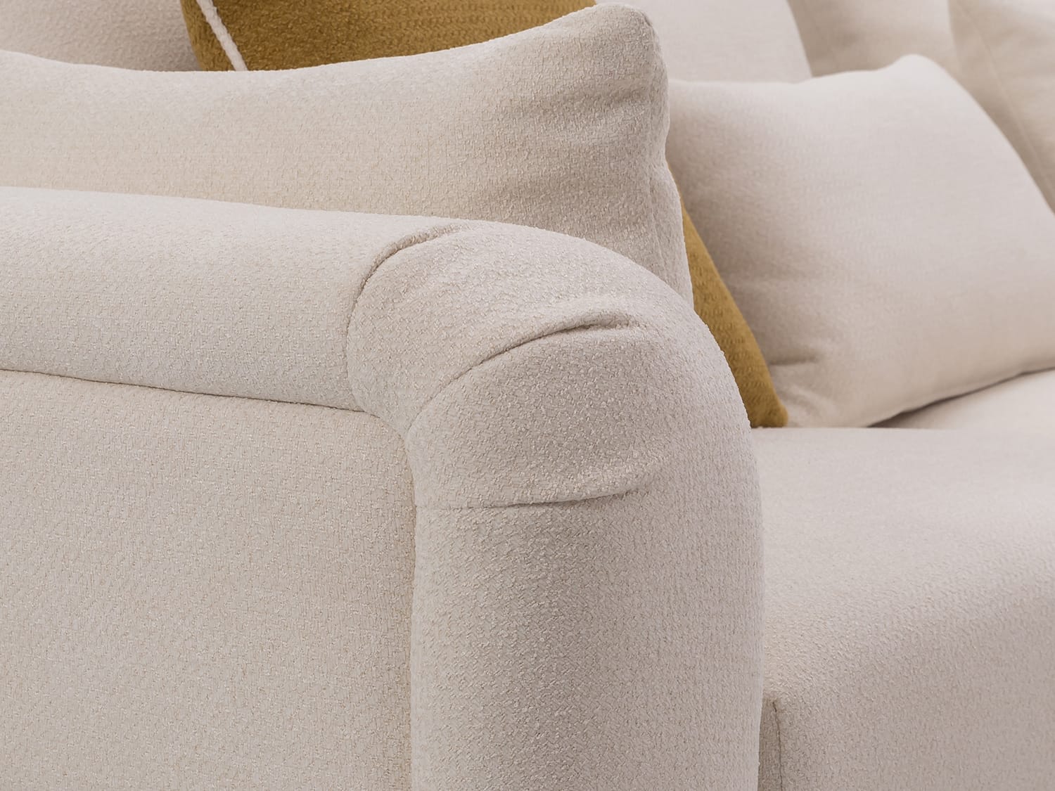 Crafted for a comfortable seating experience, it layers premium high-density foam with fabric, ensuring optimal support and plush relaxation. It resists wear while maintaining a soft, inviting touch. Built on a robust solid wood + plywood foundation, it guarantees enduring stability.