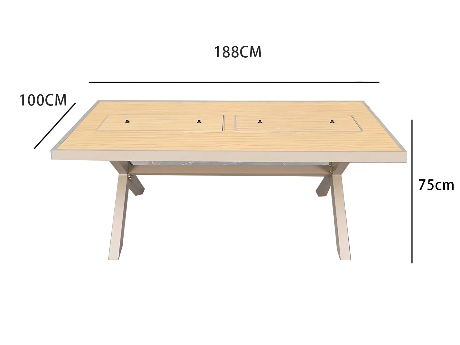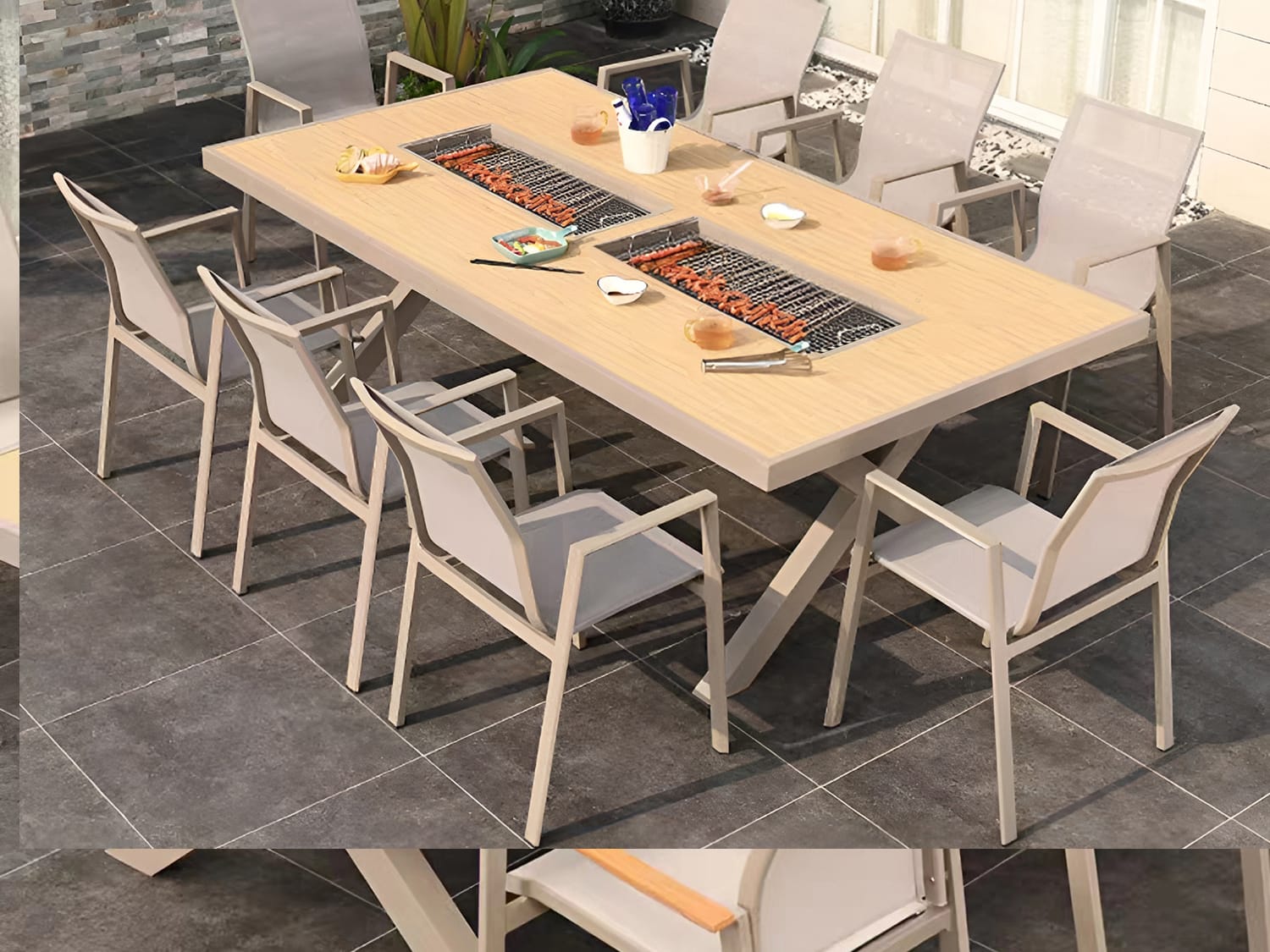 | Feature | Outdoor Dining Table Charcoal Open-Lid Grill Waterproof Rot-resistant Sun-resistant Rust-Resistant Stable Easy to clean Electroplating imitation wood grain |