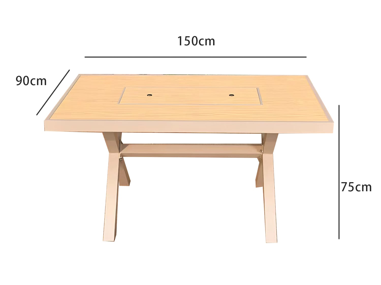 The waterproof, rot-resistant, sun-resistant, and rust-resistant design ensures that it is built to last in any weather conditions. The stable design ensures that you can enjoy your meals without any worry, while the easy-to-clean surface makes it convenient to maintain and keep in top condition. The electroplating imitation wood grain adds a touch of elegance and sophistication, while the aluminium alloy frame provides the necessary support and stability.