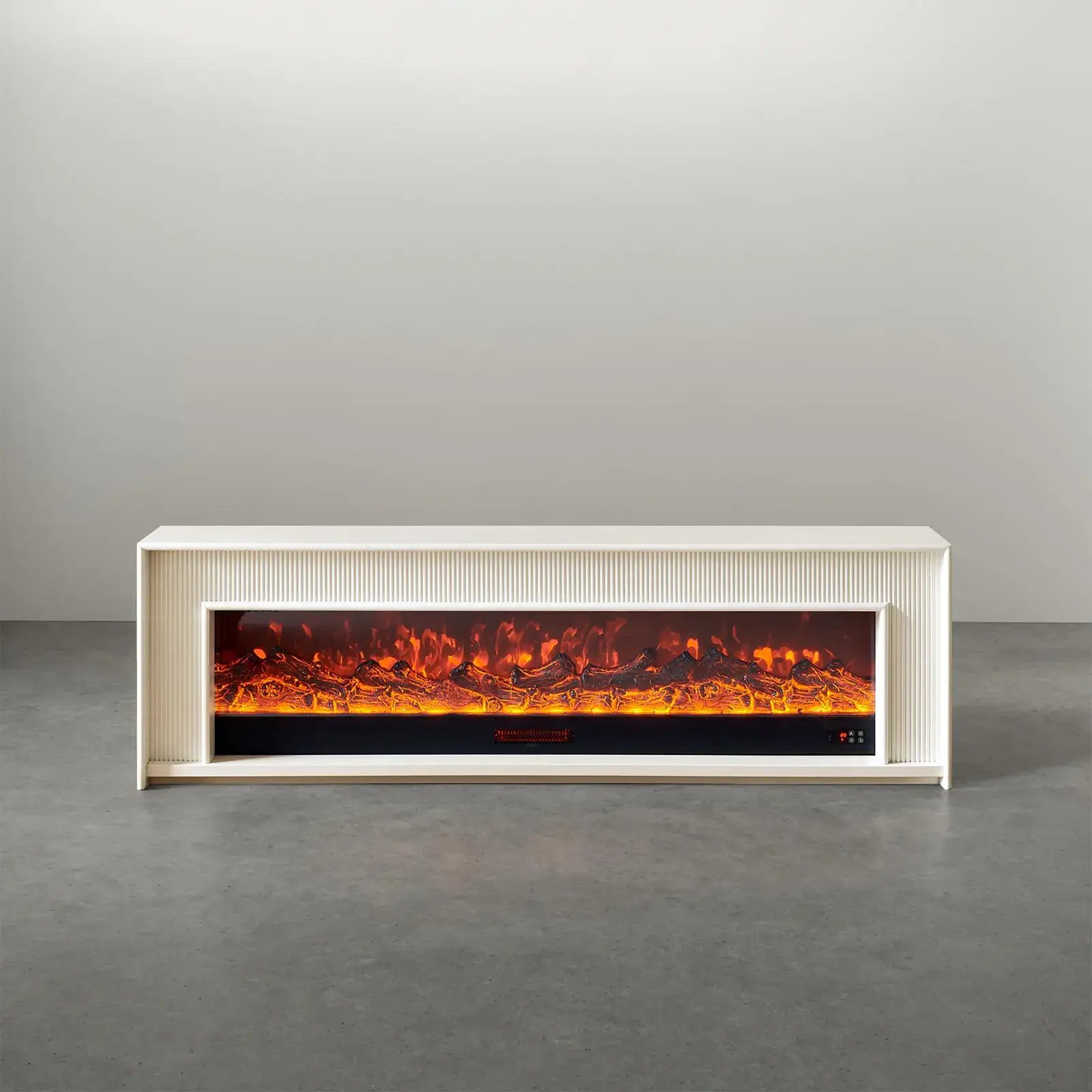 Designed to complement both contemporary and classic interiors, the Kellyville Electric Fireplace delivers gentle warmth and refined visual appeal. Featuring a realistic LED flame and optional heating, it is available in 200CM size, with your choice of White or Cream finish.