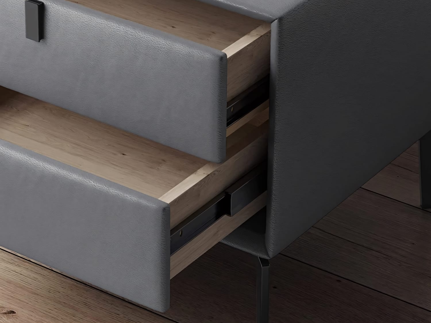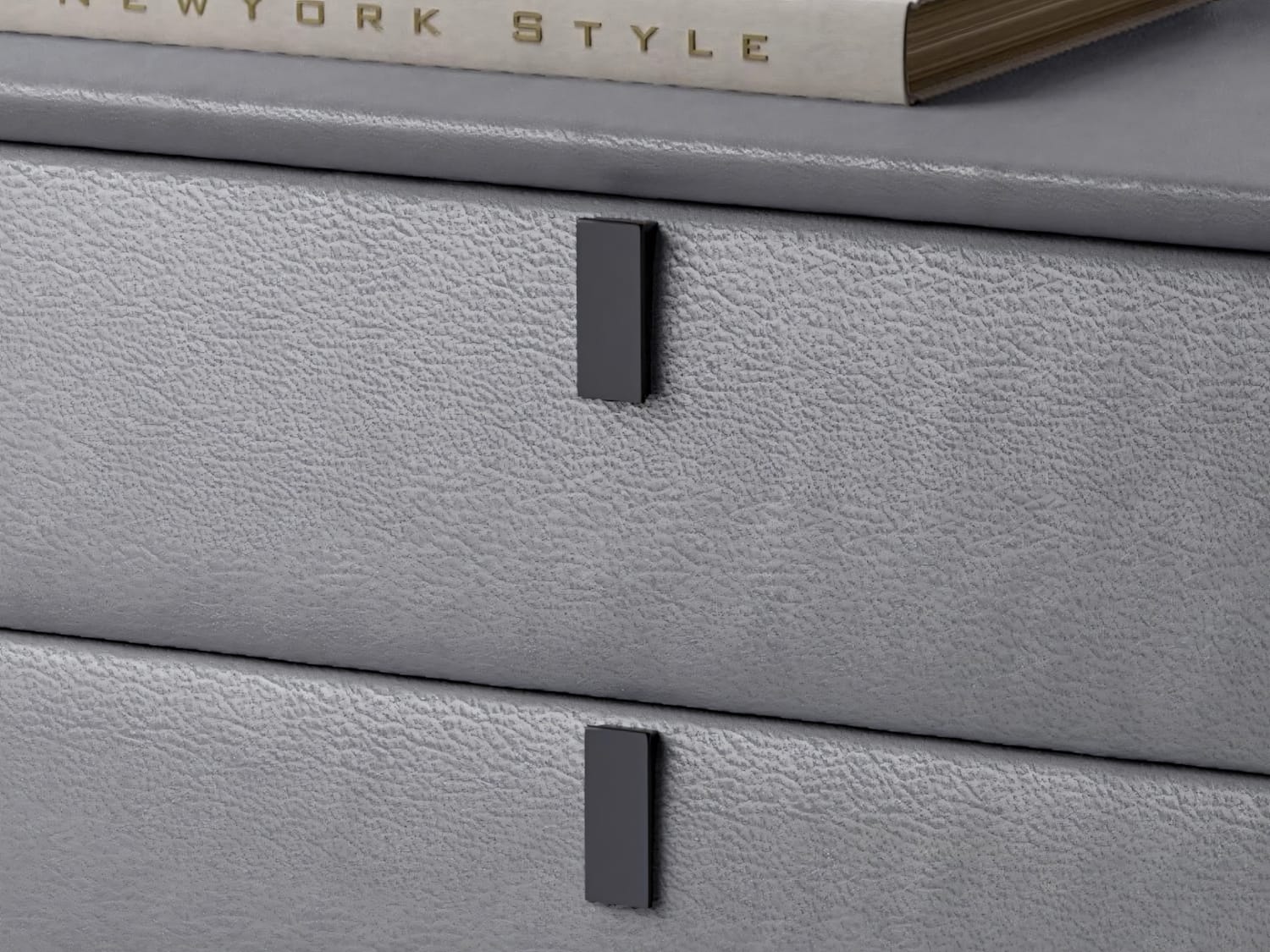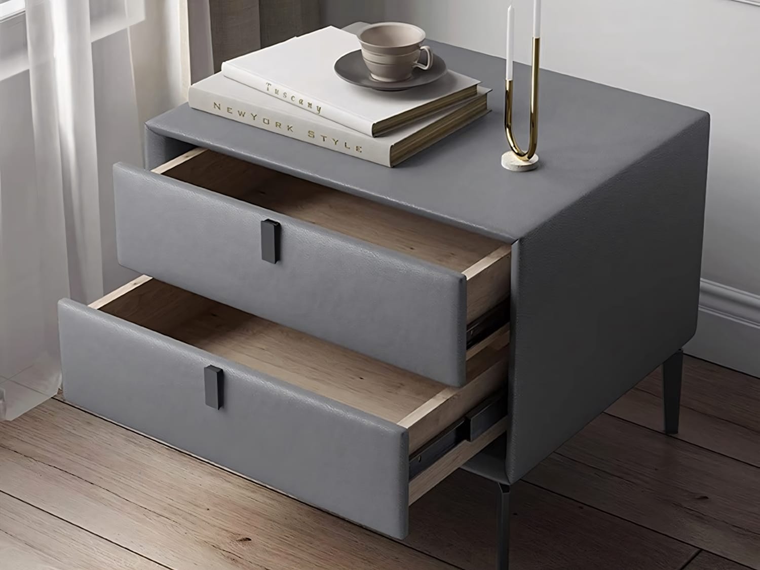 Upgrade your living space with the Kinoosao Modern Leather Bedside Table. The soft leather cover and wide countertop make it a versatile and practical addition to any room. Choose between Light Grey or Dark Grey to suit your style, and enjoy the convenience and functionality provided by the humanized handle. Experience the perfect fusion of fashion and functionality with the Kinoosao Modern Leather Bedside Table.