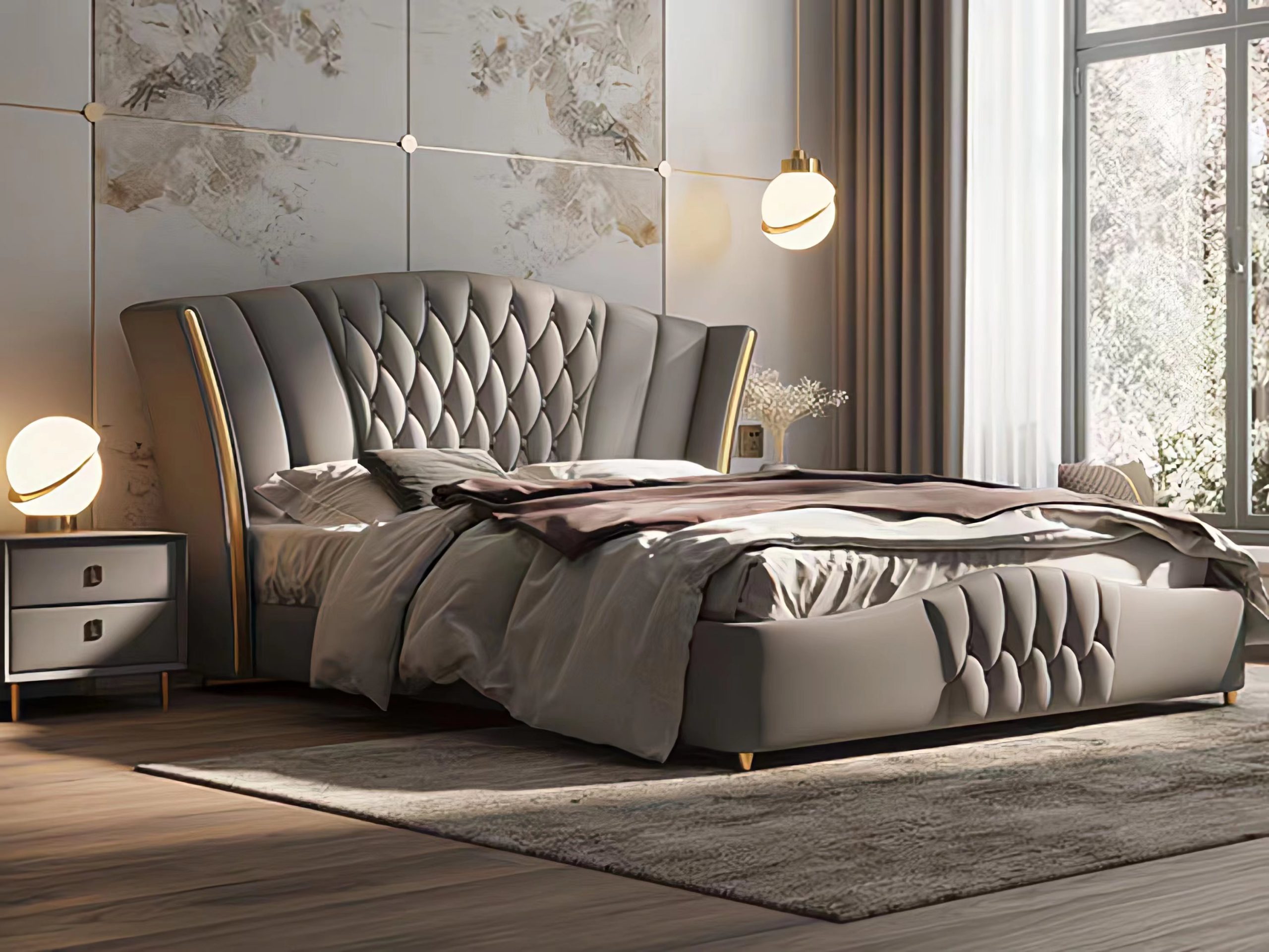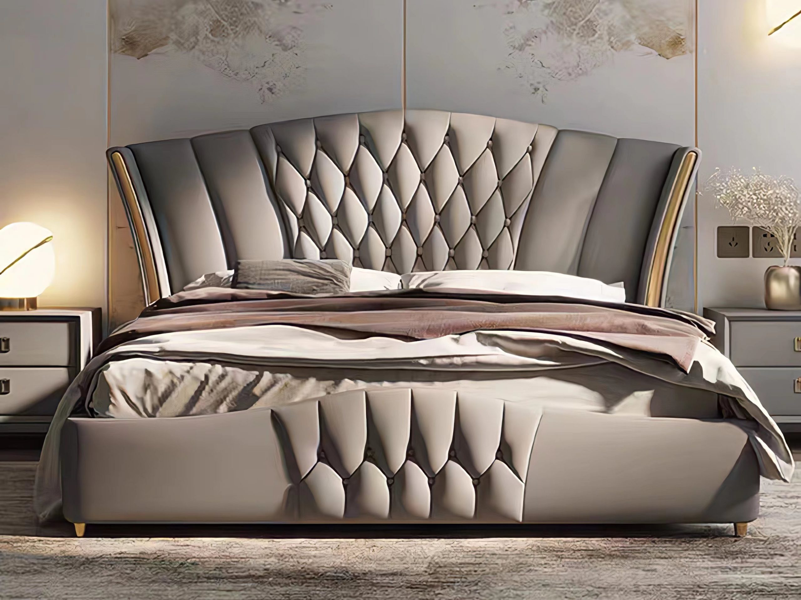 The Lucian leather bed frame features a clean-lined design with button tufting. Features a hand-applied finish and corner-blocked construction that stays free of splits, twists or breaks over time. Perfect for modern craftspeople who appreciate quality and attention to detail.