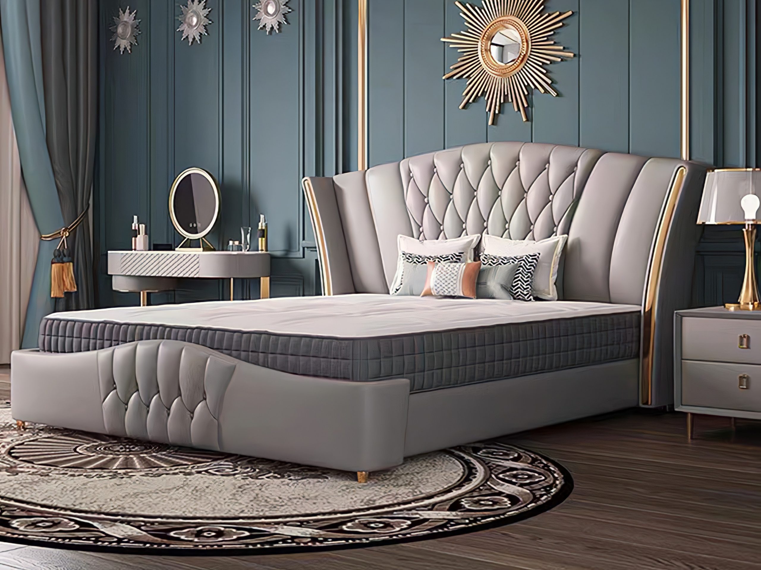 | Material | Microfiber Leather Stainless Steel Bed Slats: Pinewood |