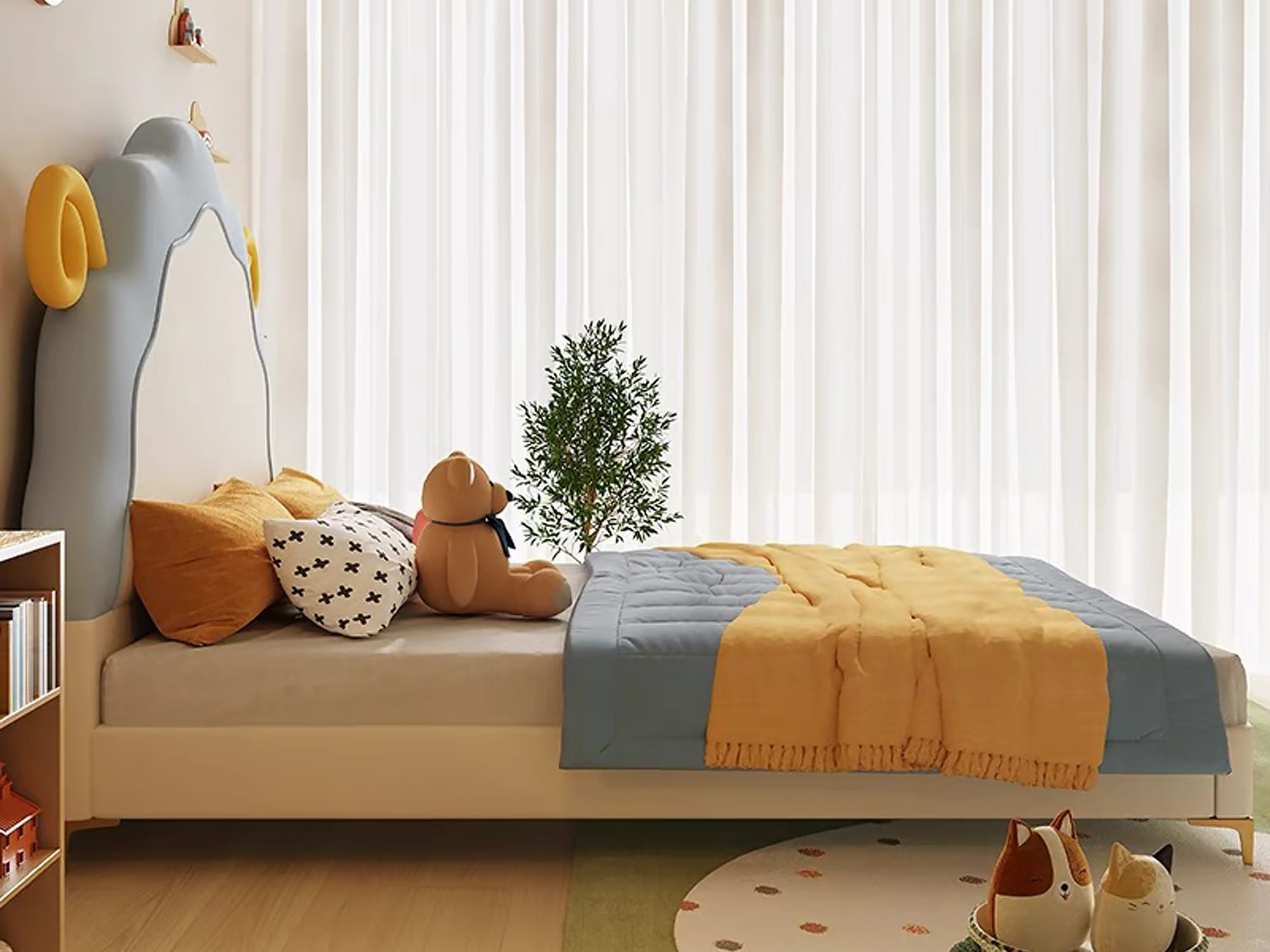 | Feature | Round Safety Corner Interesting styling Creative cartoon design Noise-reduction bed slats Comfortable fabric |