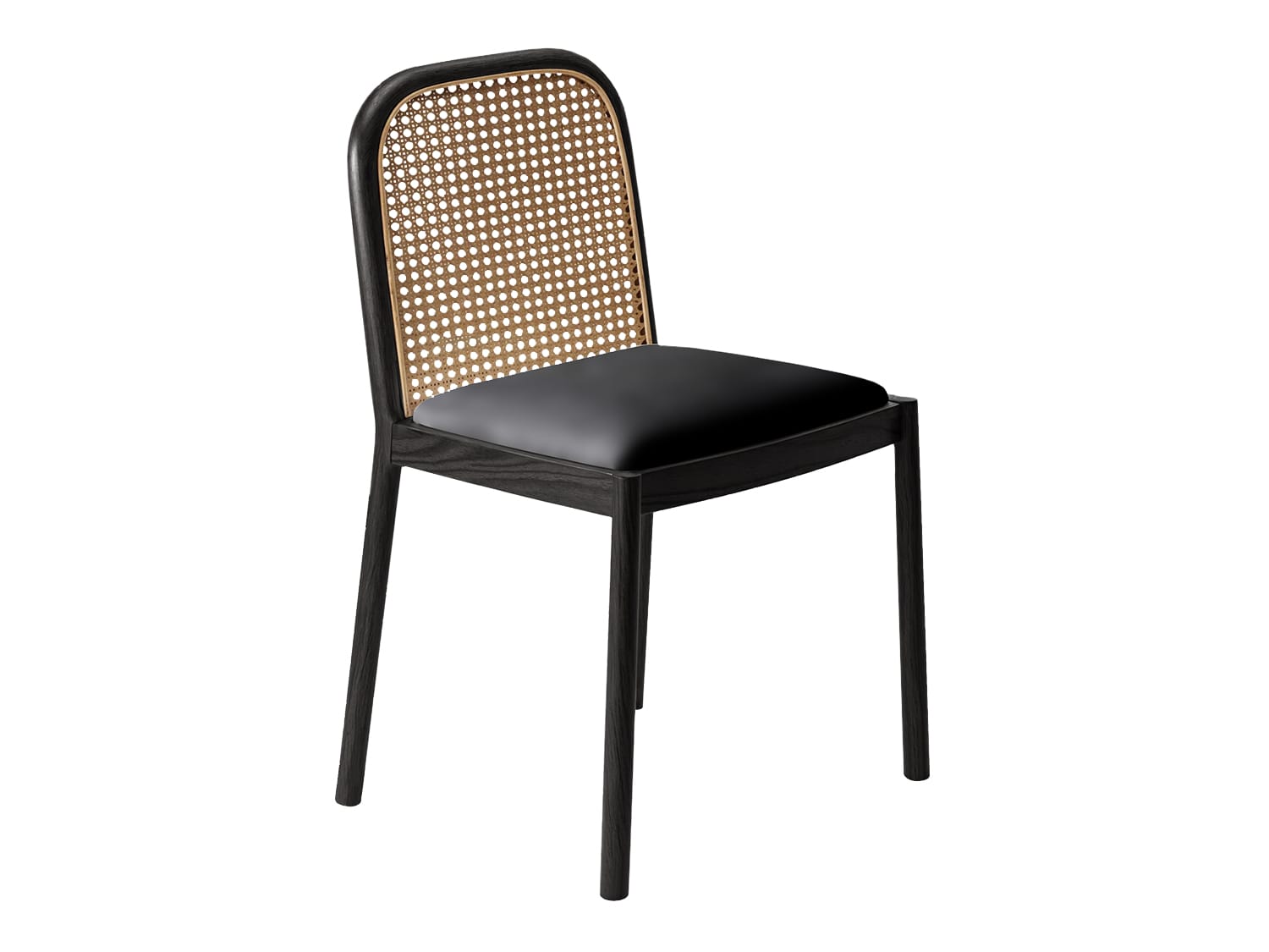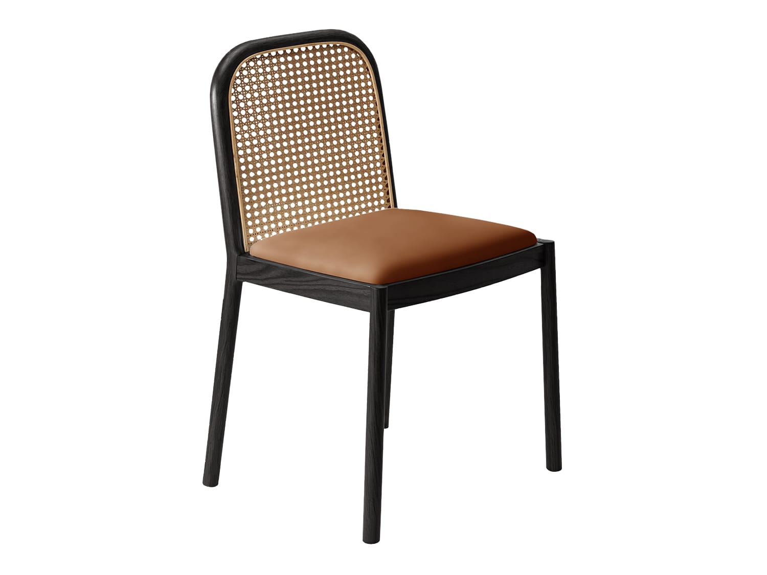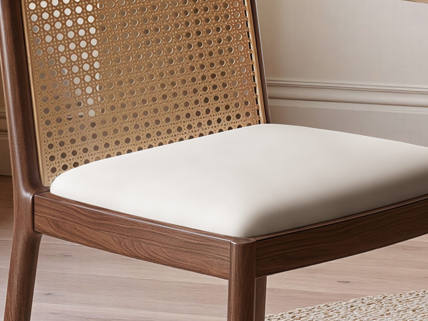 Elevate your dining experience with the Malvern Modern Dining Chair, blending ergonomic design with artisanal craftsmanship. The chair features a handwoven rattan backrest using traditional vine weaving techniques, paired with premium microfiber leather upholstery for luxurious comfort.