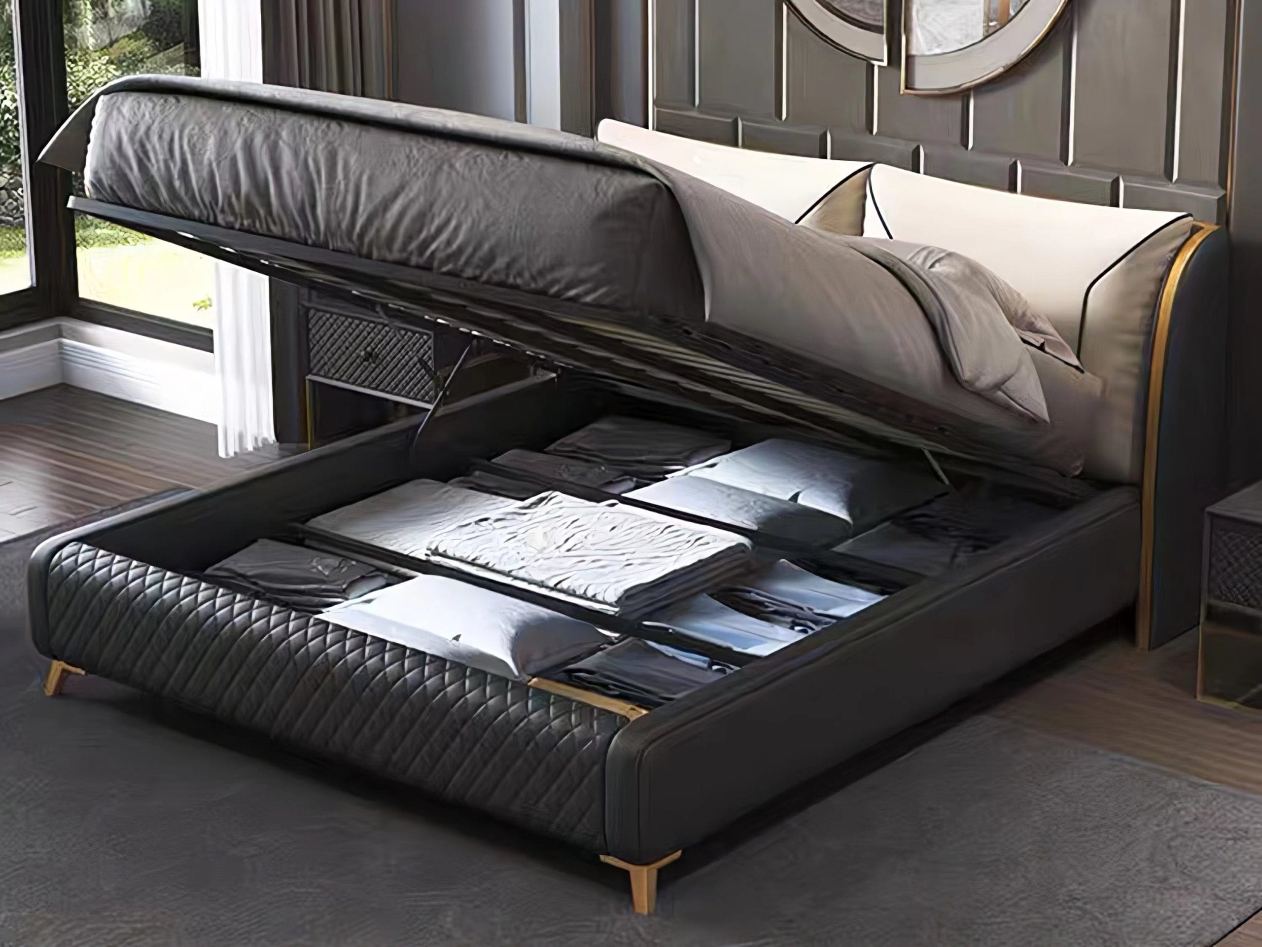 When you want the very best in designer style, the Manara Leather Bed is the perfect way to bring sophistication and luxury into your bedroom. Featuring a gas lift headboard, this bed is not only practical but stylish with its microfiber leather cover and hardwood frame. Whether you live in a minimalist style or prefer something more opulent, this piece is sure to be a stunning focal point for any room.