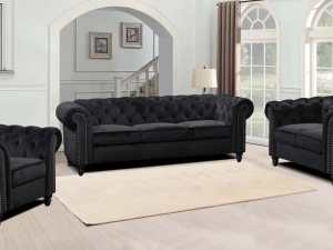 The Manuel Sofa features a fully buttoned-up Chesterfield style that’s made for stylish nights in with friends and family. It’s elegant soft piled velvet fabric and high density foam filling on a durable pine wood is made for lasting comfort.