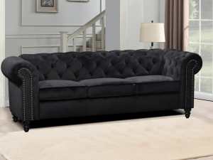 The Manuel Sofa features a fully buttoned-up Chesterfield style that’s made for stylish nights in with friends and family. It’s elegant soft piled velvet fabric and high density foam filling on a durable pine wood is made for lasting comfort.