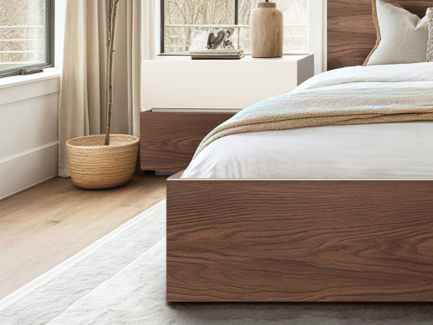 Upgrade your bedroom with the Mexicali Wooden Bed, a perfect fusion of modern elegance and practical functionality. Designed with an Italian minimalist style, this bed exudes refined sophistication while offering smart storage solutions. The gas lift mechanism allows easy access to spacious under-bed storage, ideal for stowing away bedding, seasonal clothing, or other essentials. Additionally, two smooth-gliding drawers provide extra organization without compromising on style.