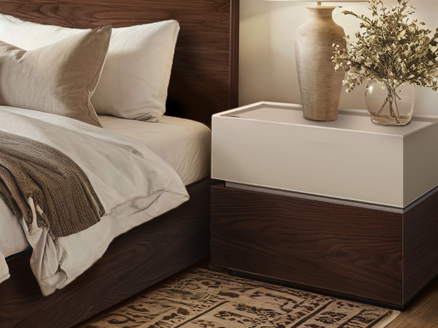 | Feature | Modern&Elegant Design Crafted with a refined aesthetic with Lift up storage function with gas hinge Italian minimalist style 2 Drawers Reserve the skirting line |